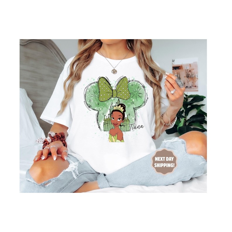 Camiseta Feminina De Algodão, Versátil E Estilosa, Com Estampa Do Castelo Da Princesa Tiana Da Disney