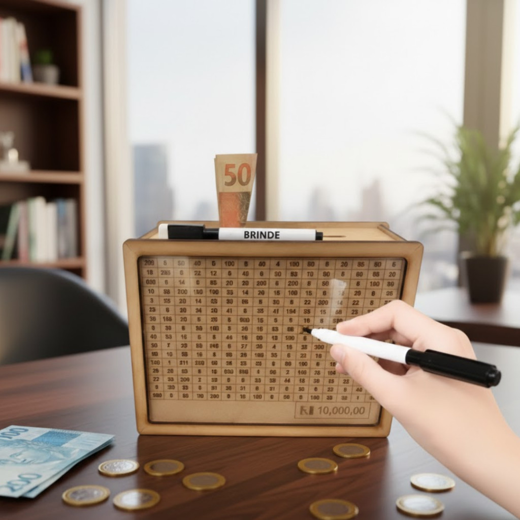 Cofrinho dos Desafios 10 Mil Reais Desafio de Guardar Dinheiro | Educativo Cofre WoodBox
