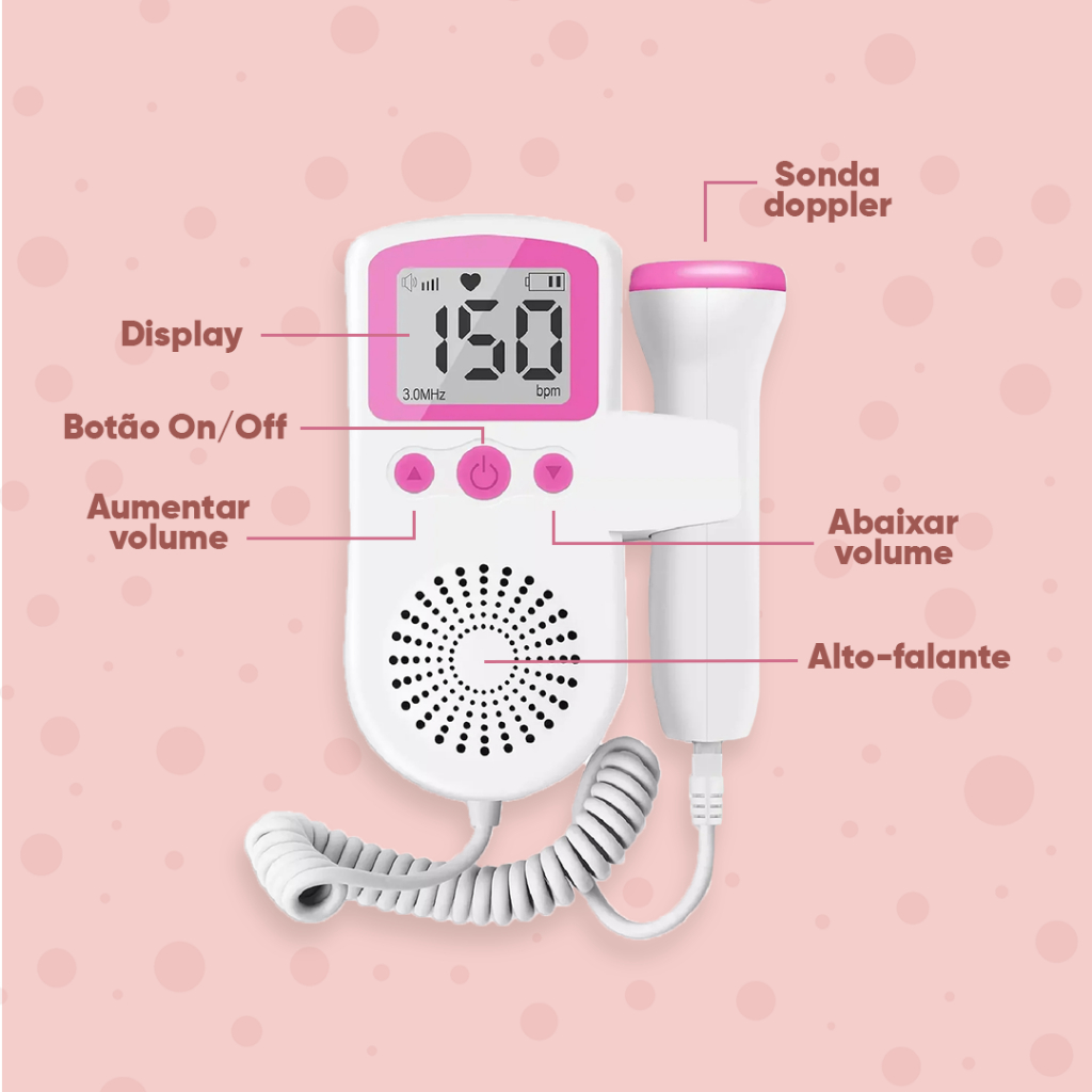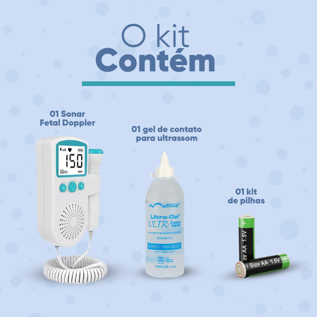 Monitor Bebe Ultrassom + Gel + Pilha Frequencia Cardiaca Doppler Sonar Fetal Display Gravidez Som Batimento