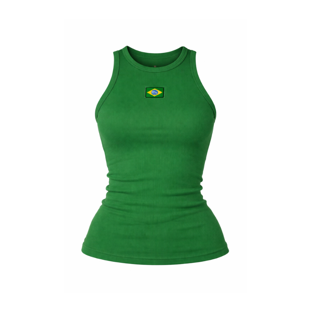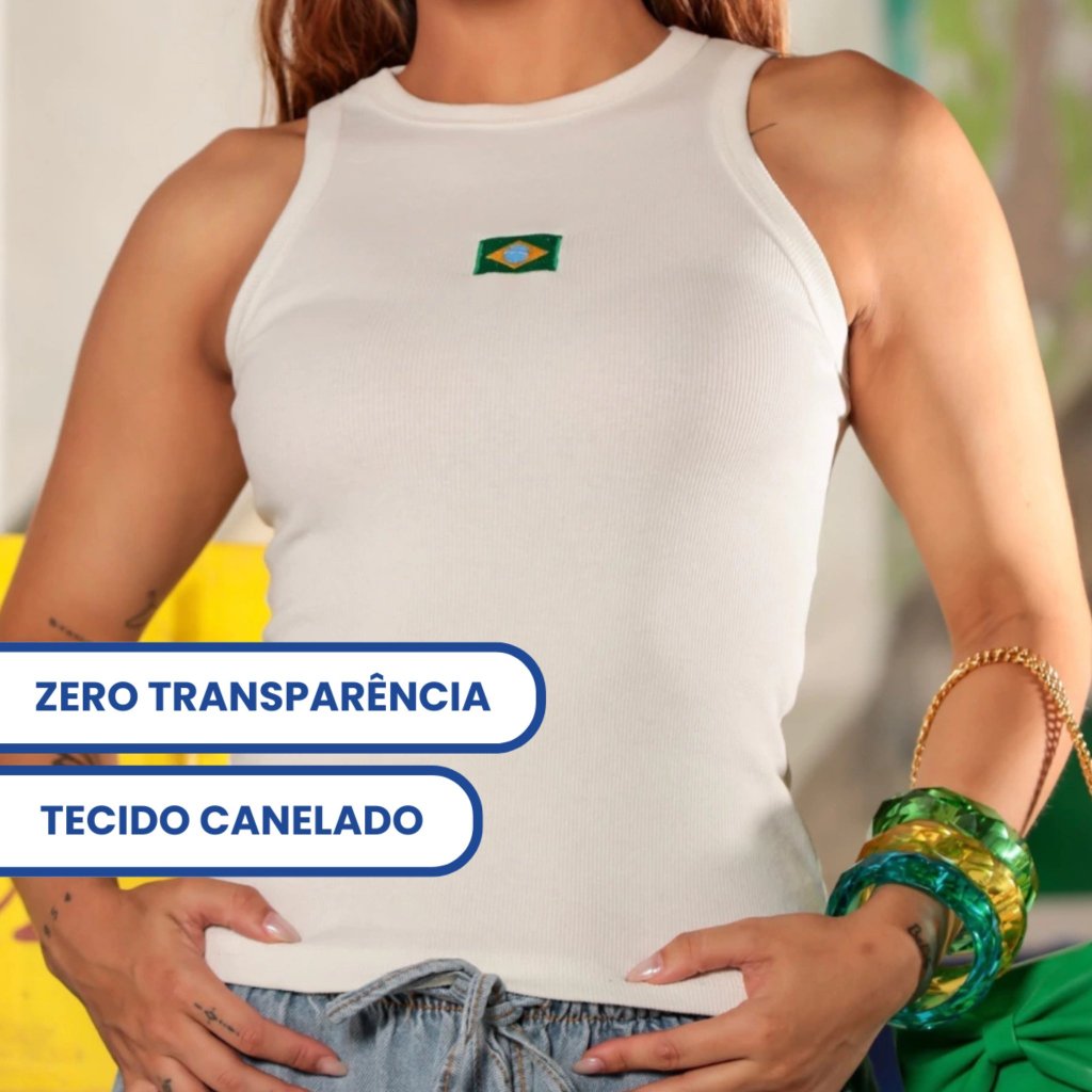 Regata Feminina Brasil Copa Canelada Bandeira Camiseta Blusinha Torcida Verão Mulher Br Básica Algodão Moda Blogueira