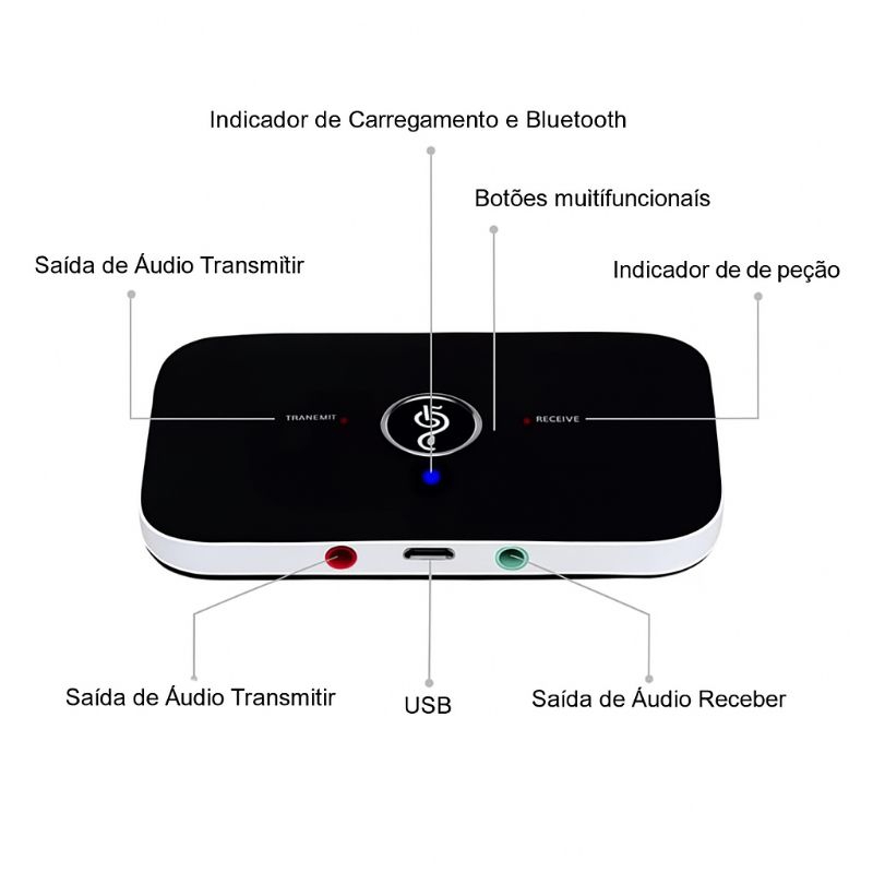 Áudio Transmissor Receptor Bluetooth 5.3 TV Som RCA 2 em 1