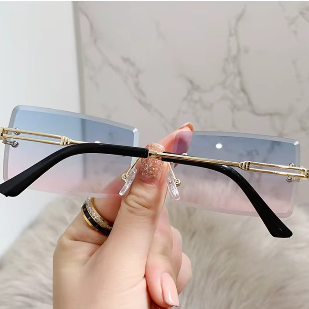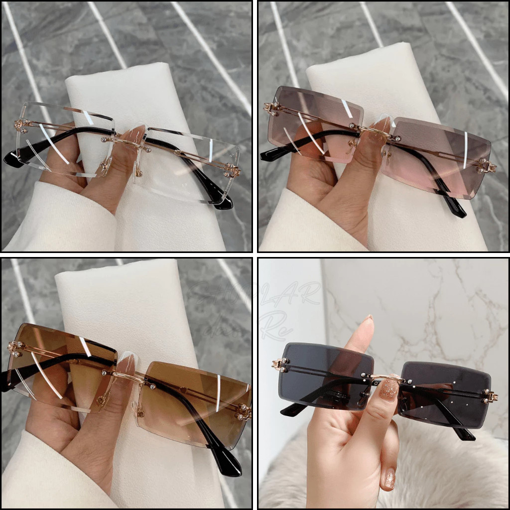 Óculos de Sol Feminino Sem Aro Retangular Blogueira Proteção UV Verão Praia Piscina