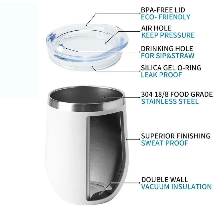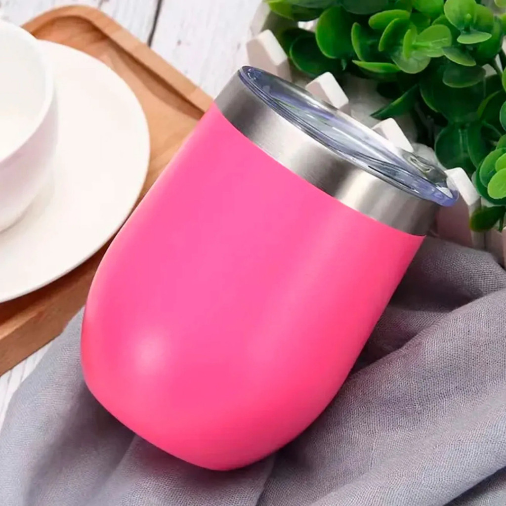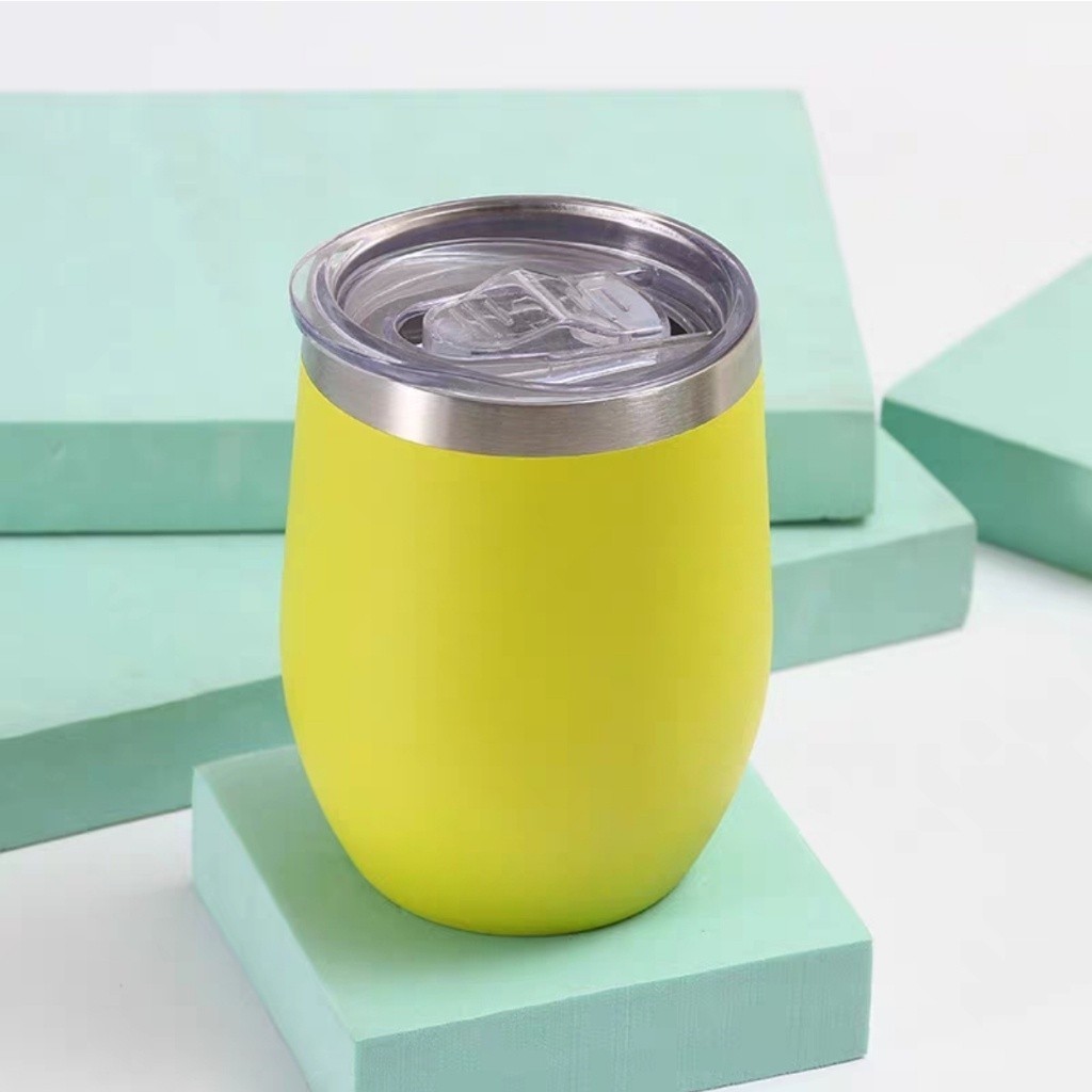 Kit Com 10 Ovo Copos Térmico 360ML Em Inox Com Tampa Acrílica Varias Cores