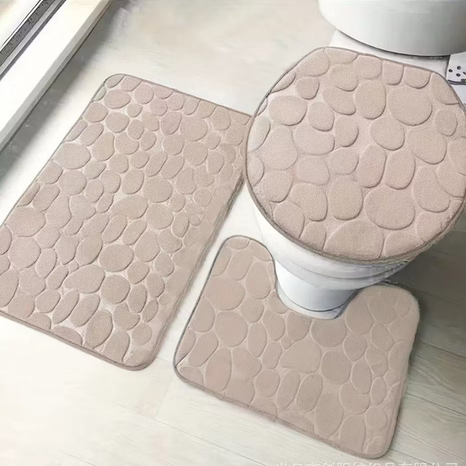 Jogo 3 Peças De Tapete Banheiro Desenhado (Liso) Com 3 Peças Antiderrapante