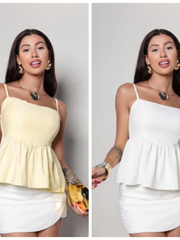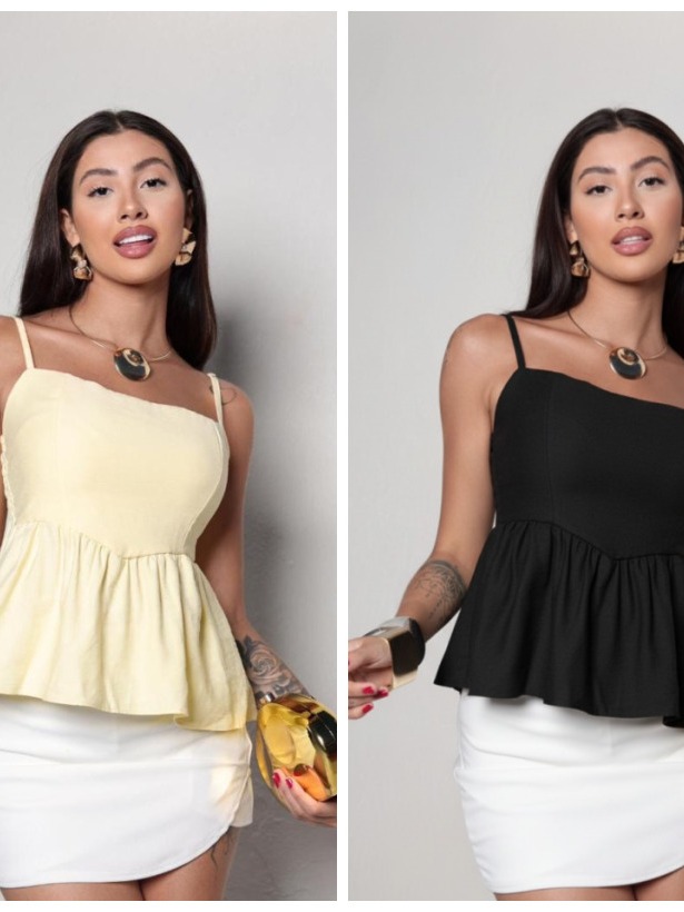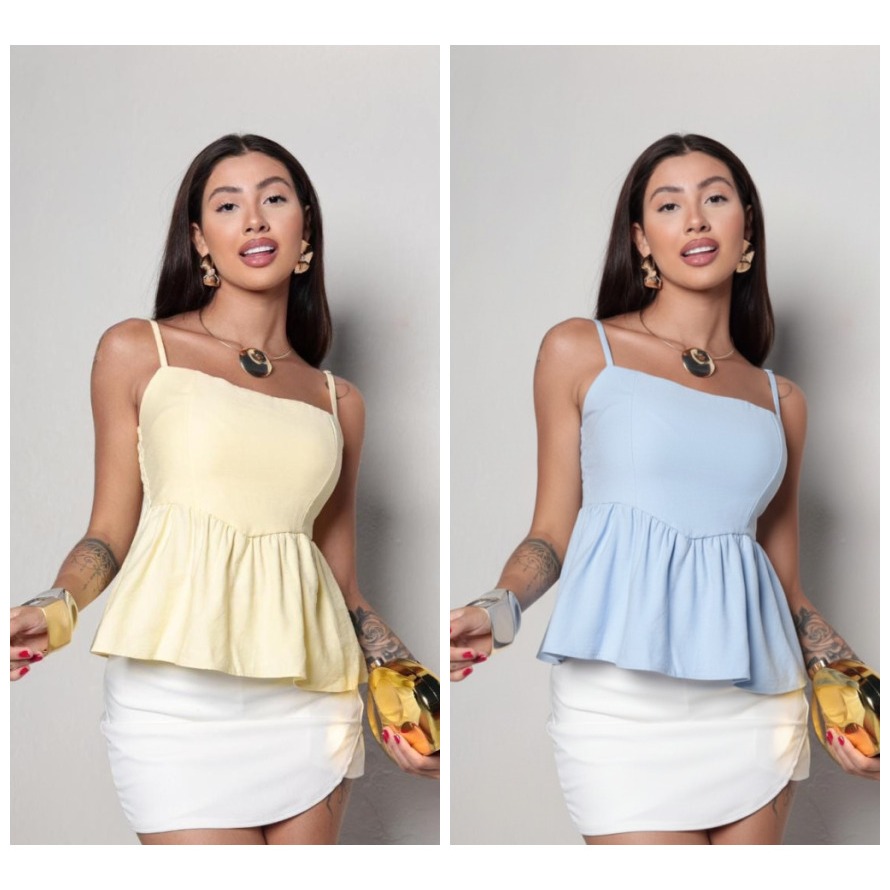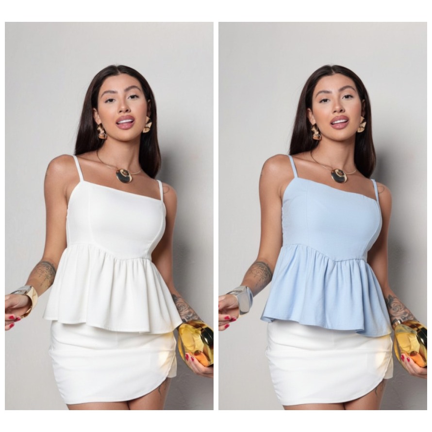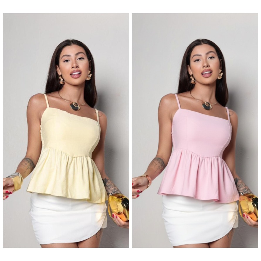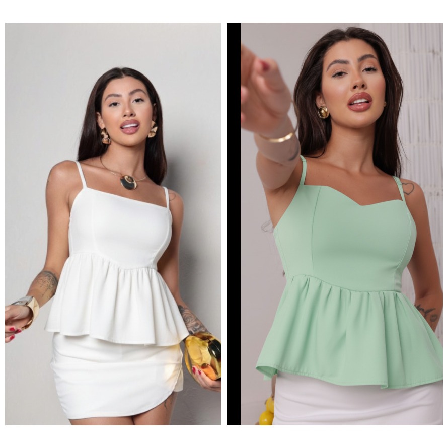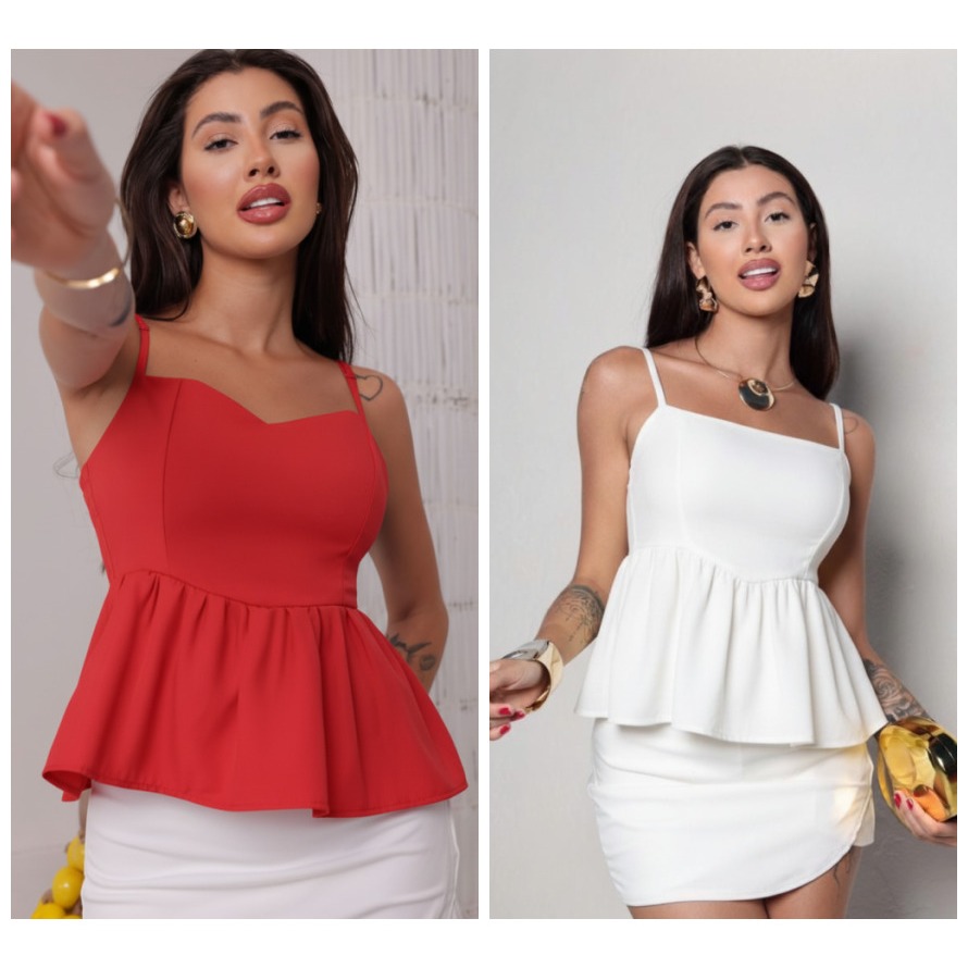 KIT 2 Batas Peplum Blusa Batinhas Elástico Babado Soltinha Natal Vermelho Moda Gringa Verão 2026
