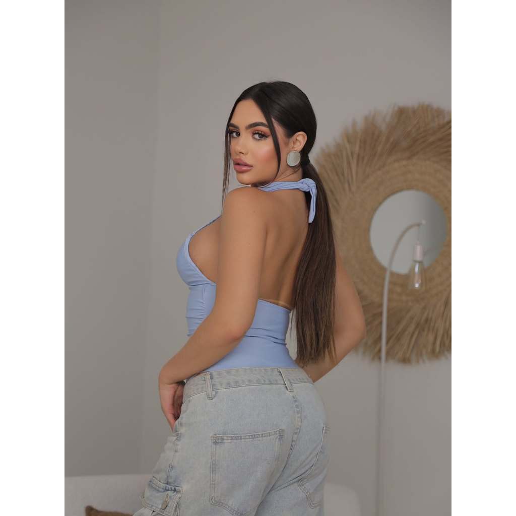 Body Gola Alta Amarração Franzido Drapeado Bori Enrugado com Bojo Costas nuas Gringa Tendência Verão