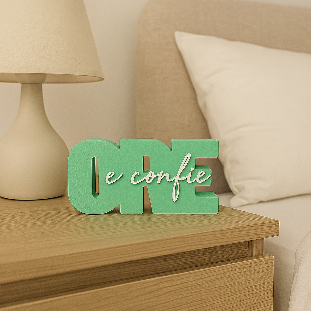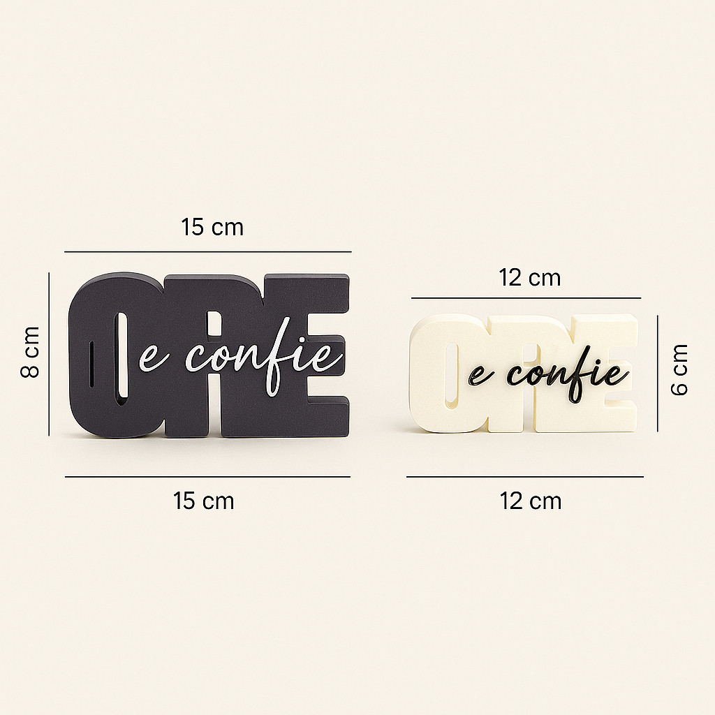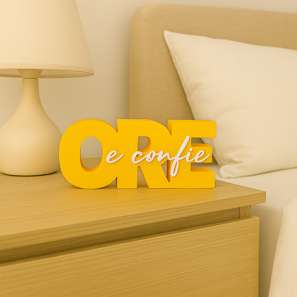Letreiro Decoração Frase "ORE E CONFIE" Objeto Decorativo Moderno para Mesa, Quarto ou Escritório Presente Criativo