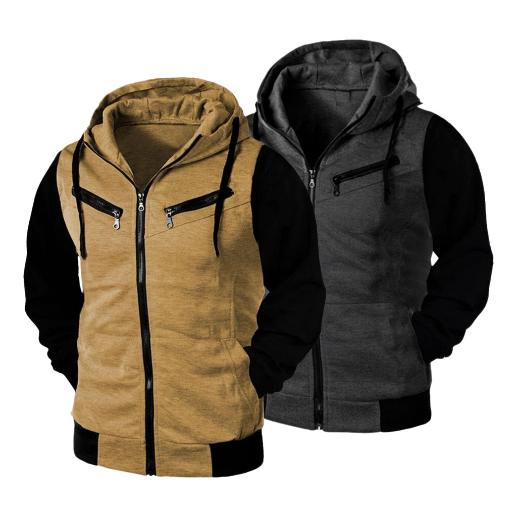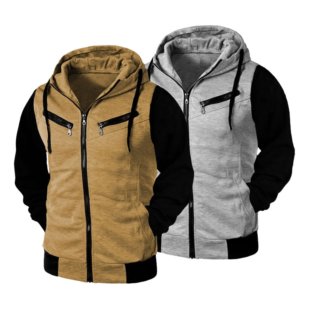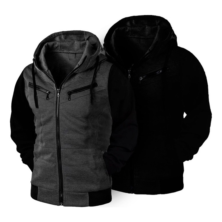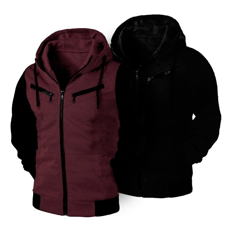 Kit 02 Blusa De Frio Moletom Unissex Com Ziper Grosso Capuz