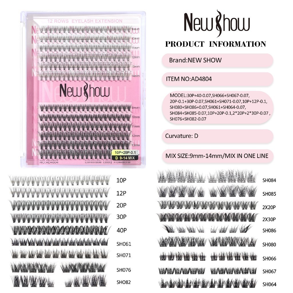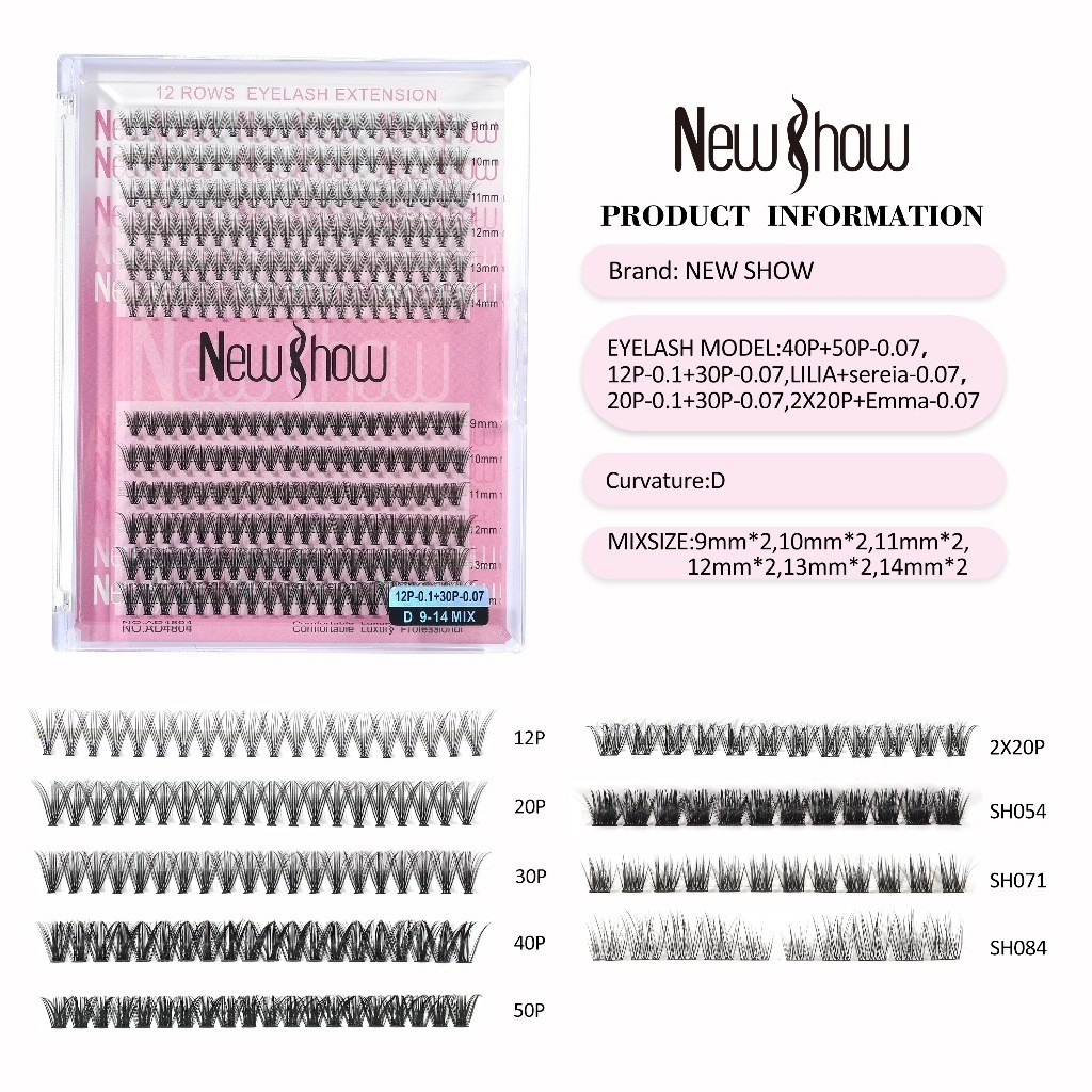 New Show Cílios Postiços Tufo Volume Tipo Combinado D Curl Mix 9-15mm-Extensão Profissional/PACOTE