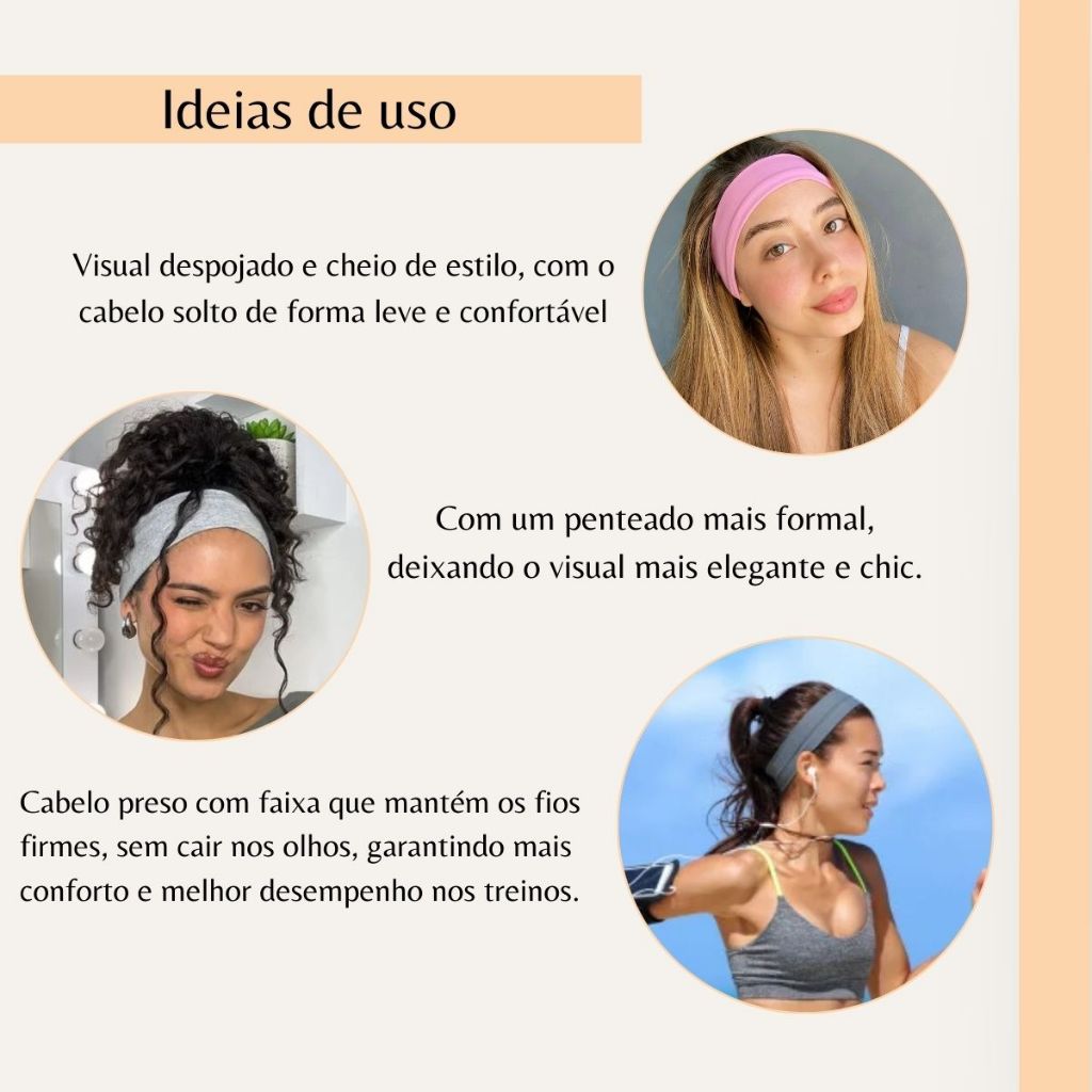 Kit 12 Faixas De Cabelo Confortável Elástica Esporte Tiara Academia Lazer Passeio Yoga Headband