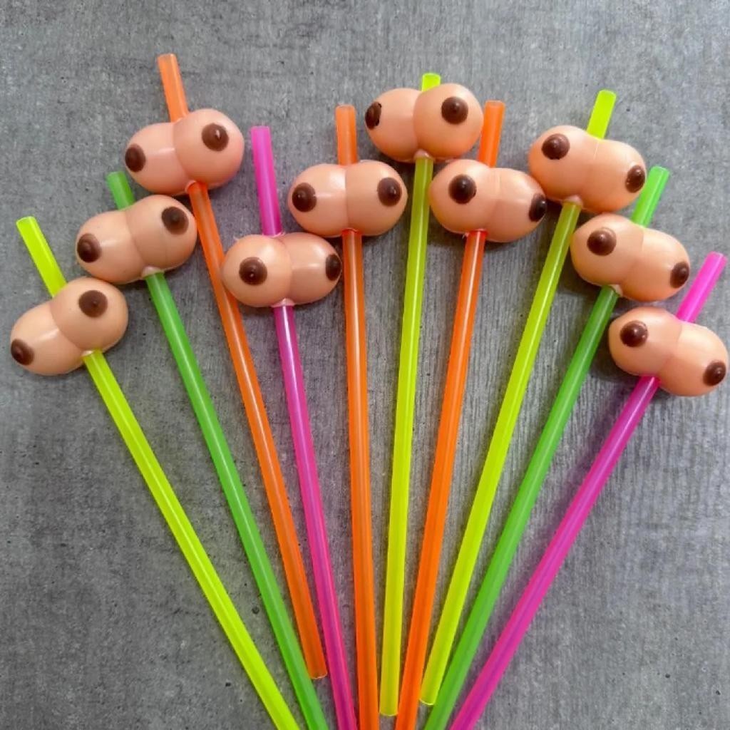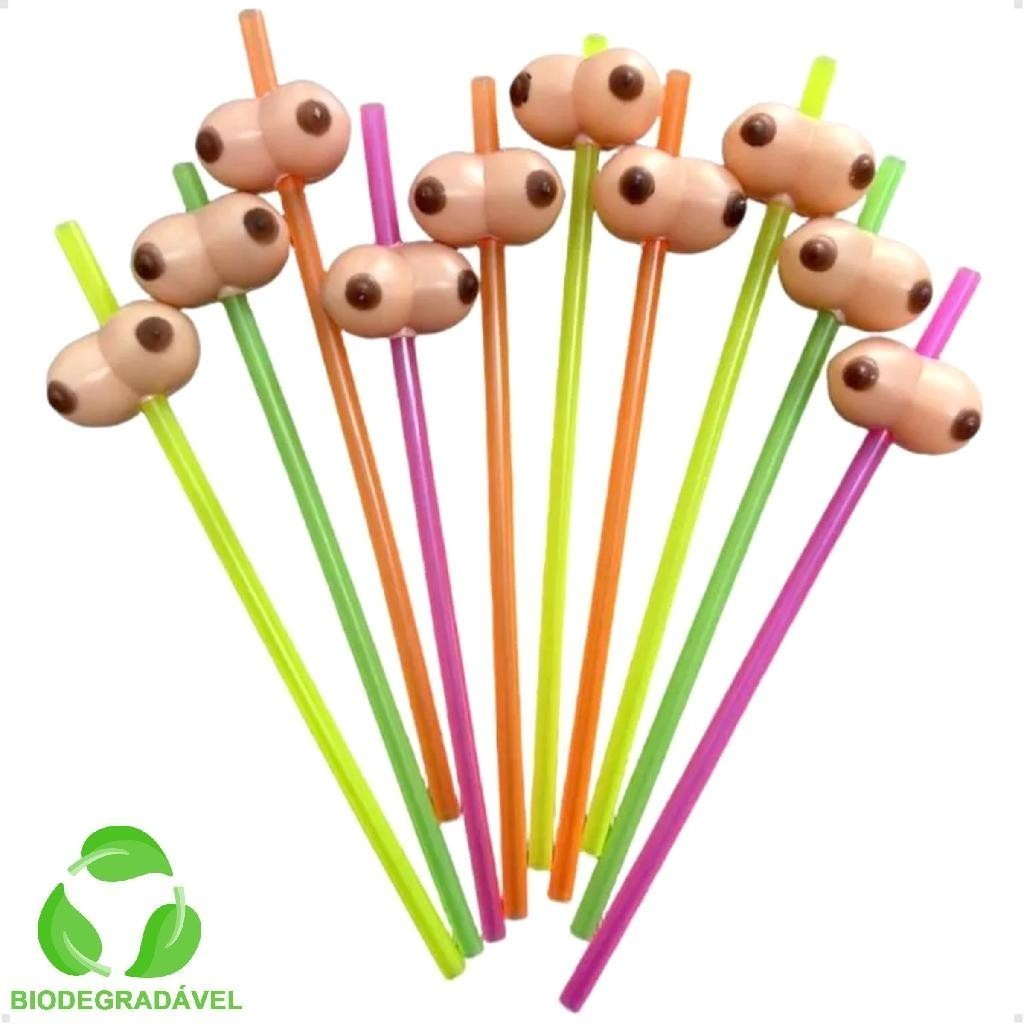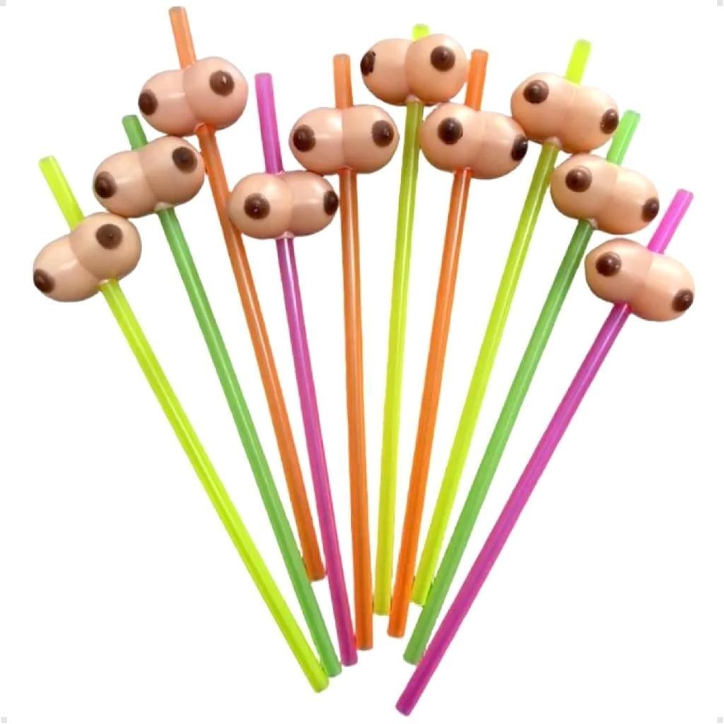 Kit 10 Canudos Seios Peitos Neon Festa Despedida de Solteiro - ENVIO IMEDIATO