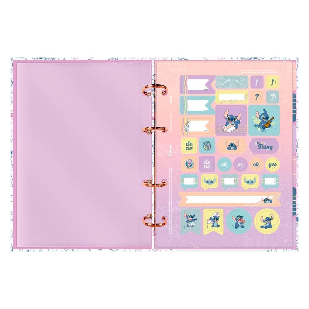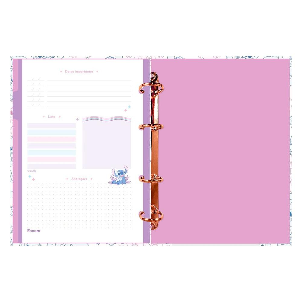 Fichário Colegial 17,7x24cm Médio 4 Fechos Sem Lombo 120 Folhas Disney Stitch Angel Foroni