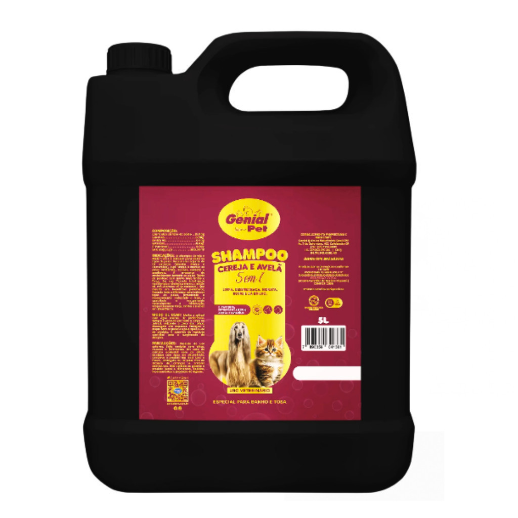 Shampoo Genial Pet 5 em 1 Cereja e Avelã 5L Galão – Shampoo antipulgas- Shampoo Clareador - Sabão de coco