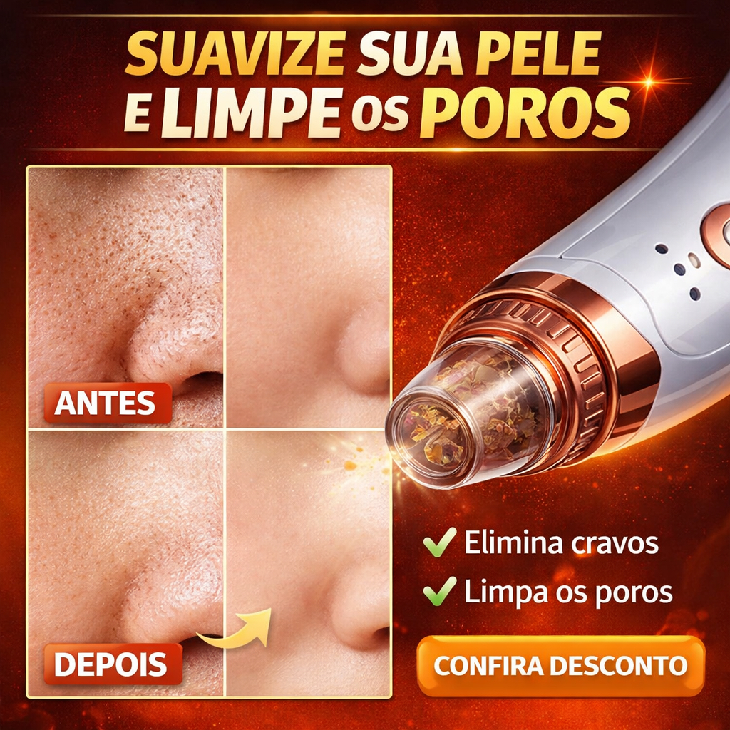 Removedor de Cravos a Vácuo VacuumSkin Pro Elite™ Limpador de Poros Facial Profissional 5 Ponteiras
