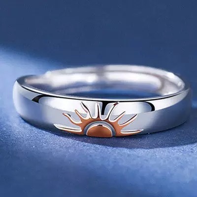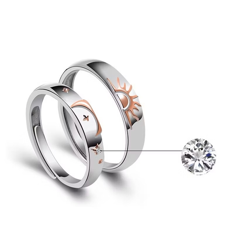 Par de Alianças Prata 925 Sol e Lua de Namoro Ajustável - Conexão e Amor em Prata 925