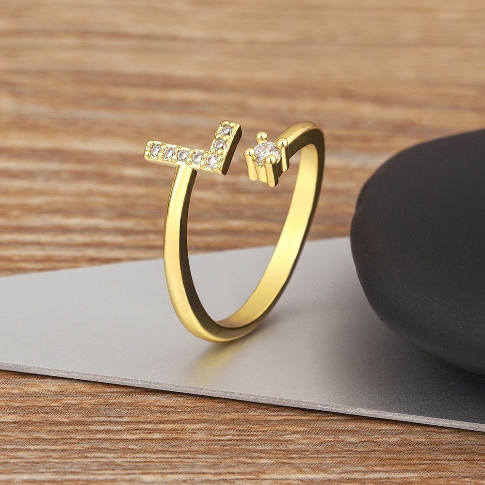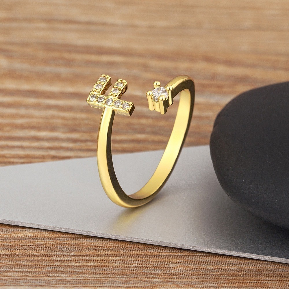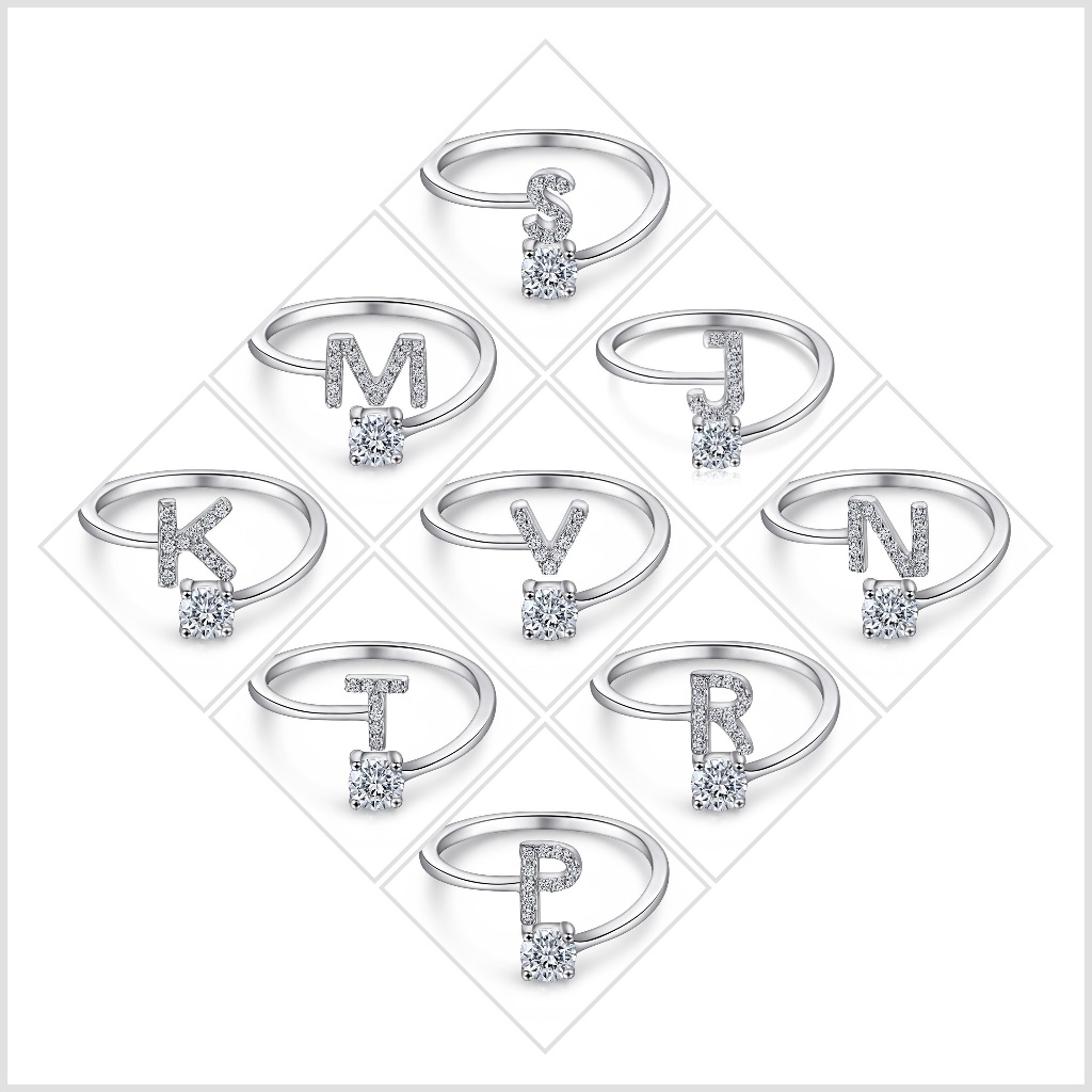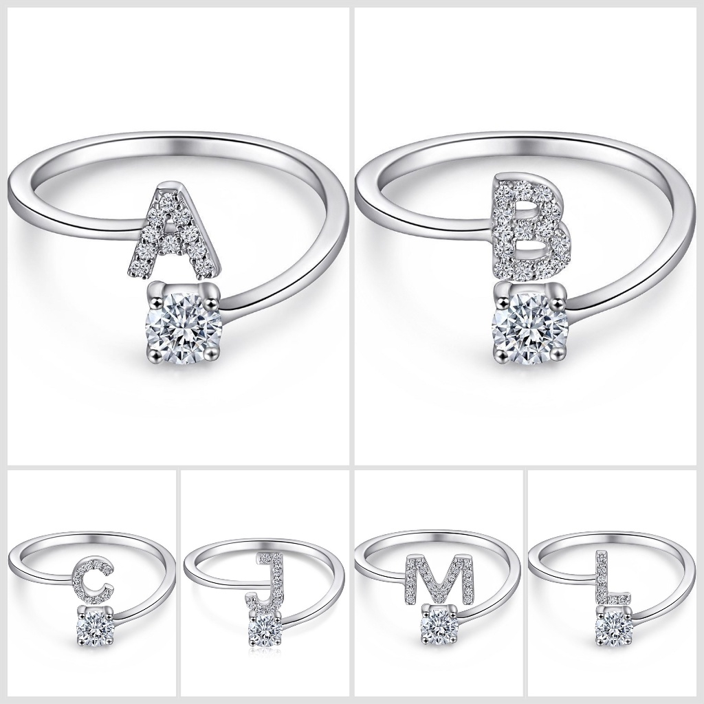 Anel de letra Prata 925 Aparador Zircônia Feminino Delicado