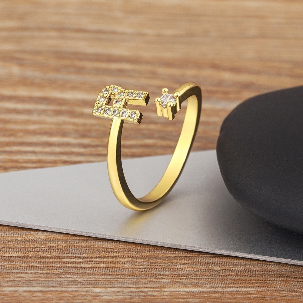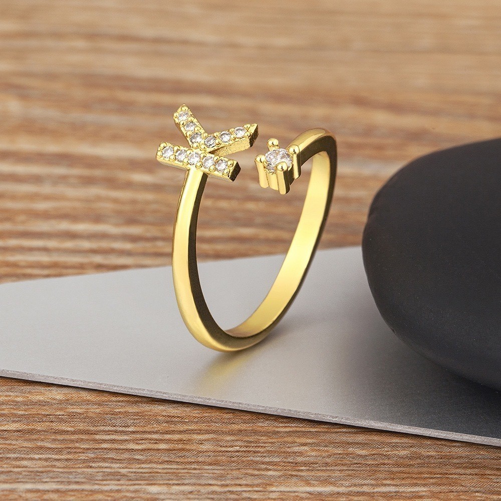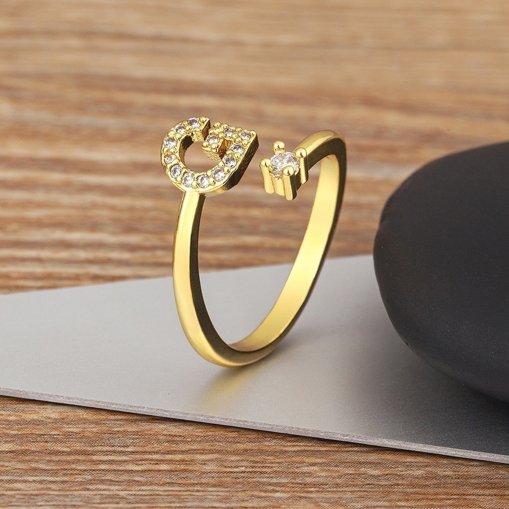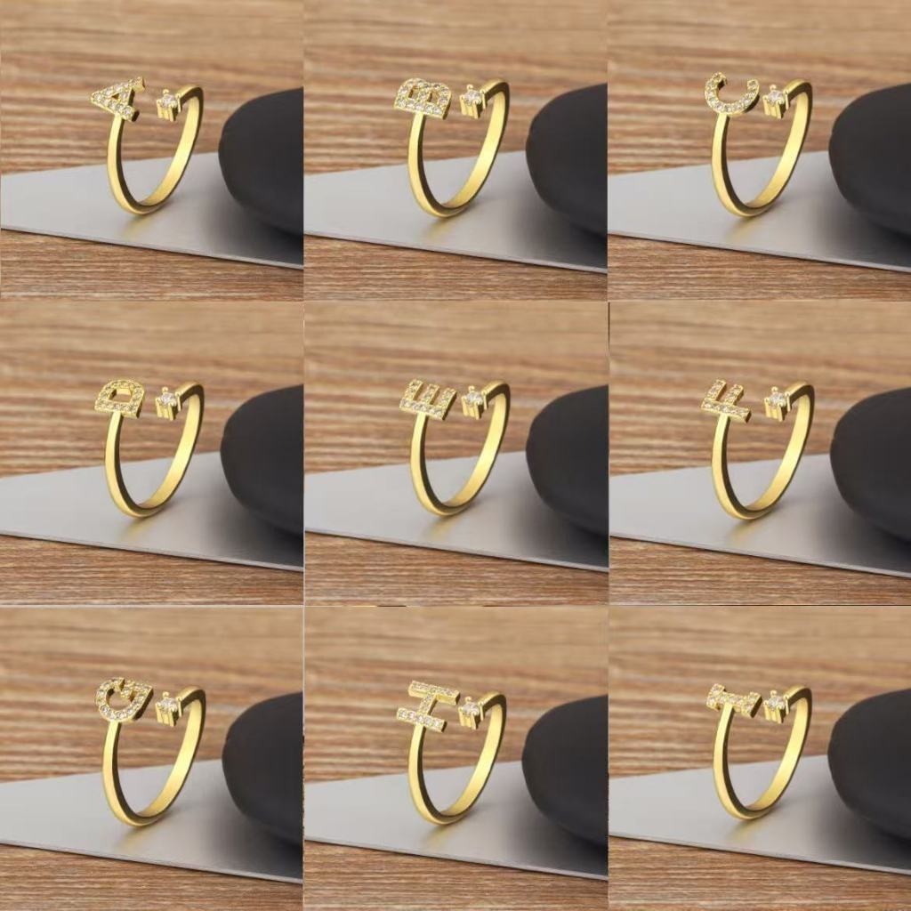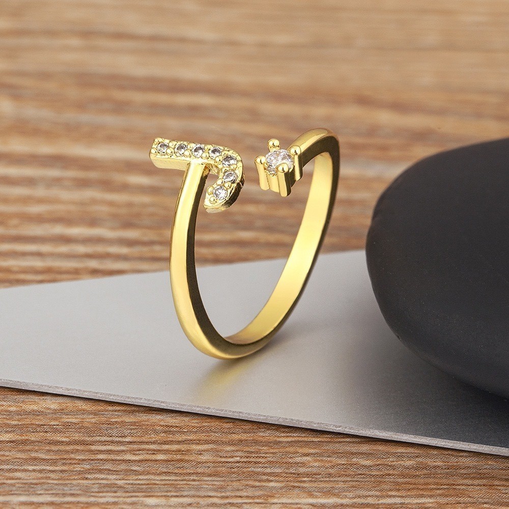 Anel de letra Prata 925 Aparador Zircônia Feminino Delicado