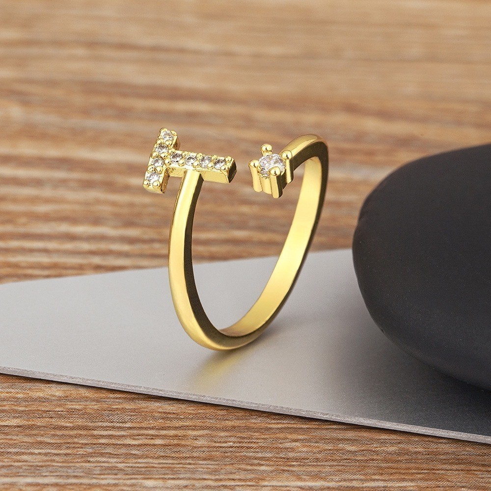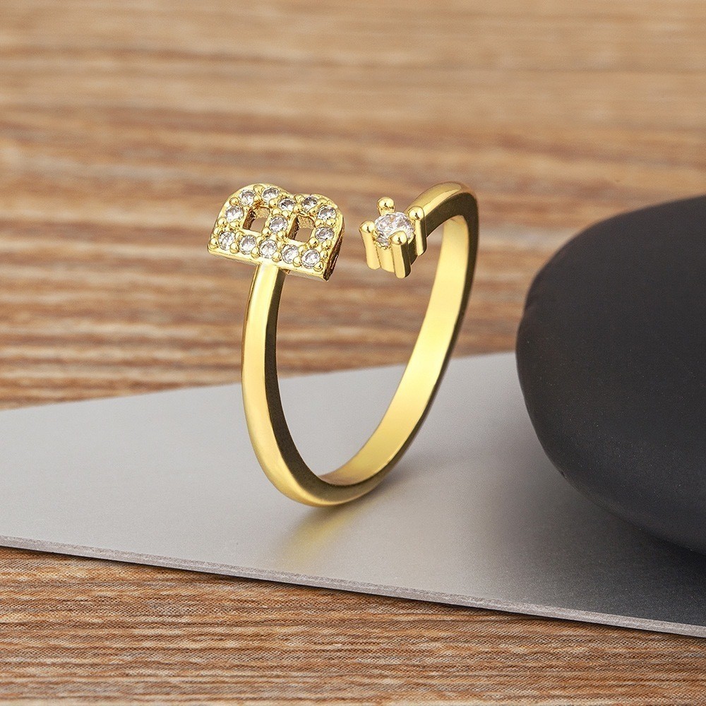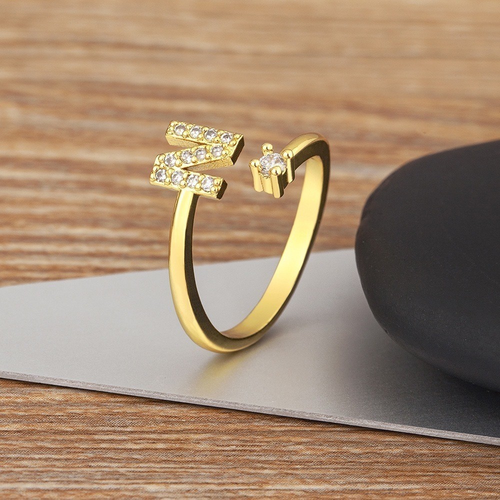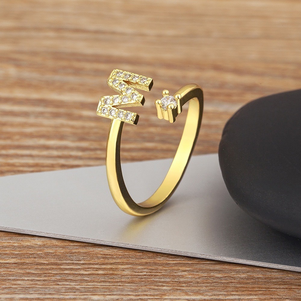 Anel de letra Prata 925 Aparador Zircônia Feminino Delicado