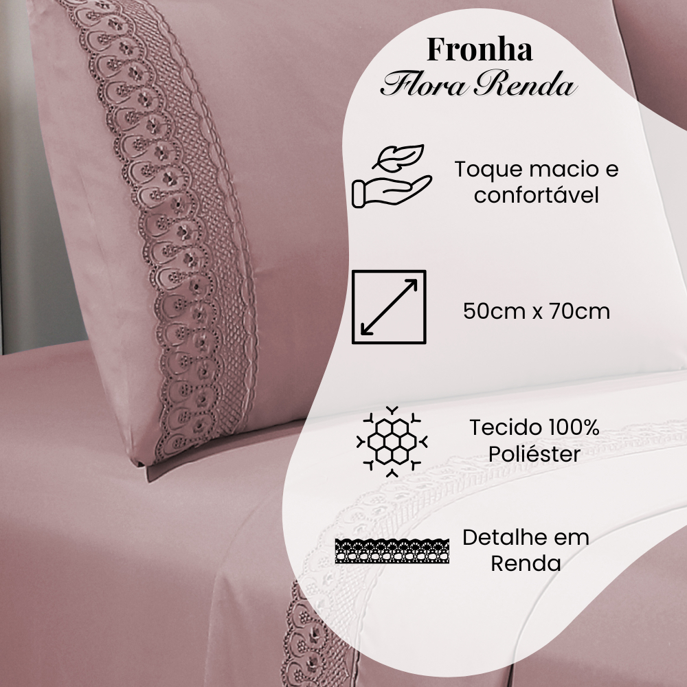 Kit 2 e 4 Peças Fronha de Travesseiro 70x50cm Macio Rendada Quarto Cama Flora Renda Habitat