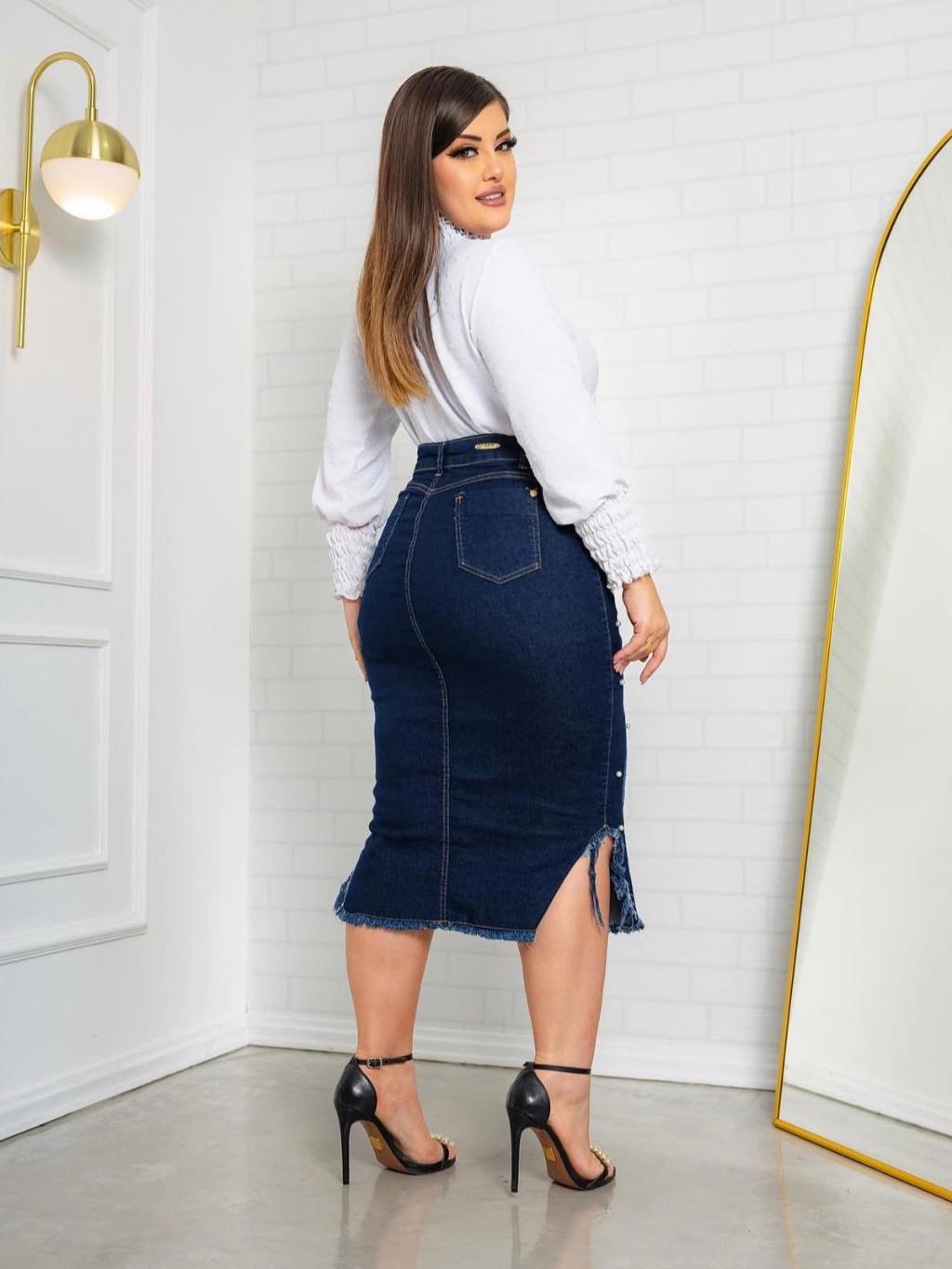 Saia Midi Lascão de Lado com Pérolas