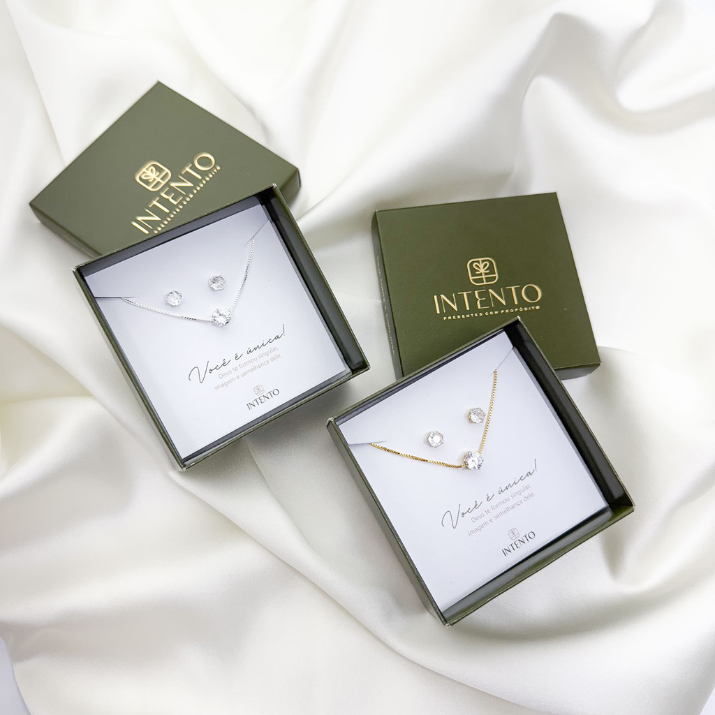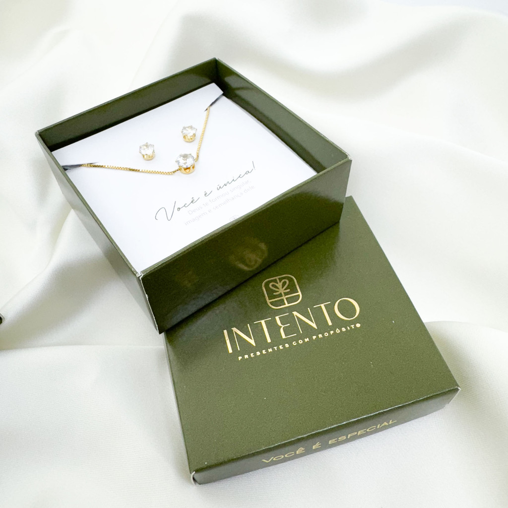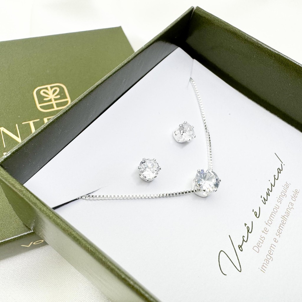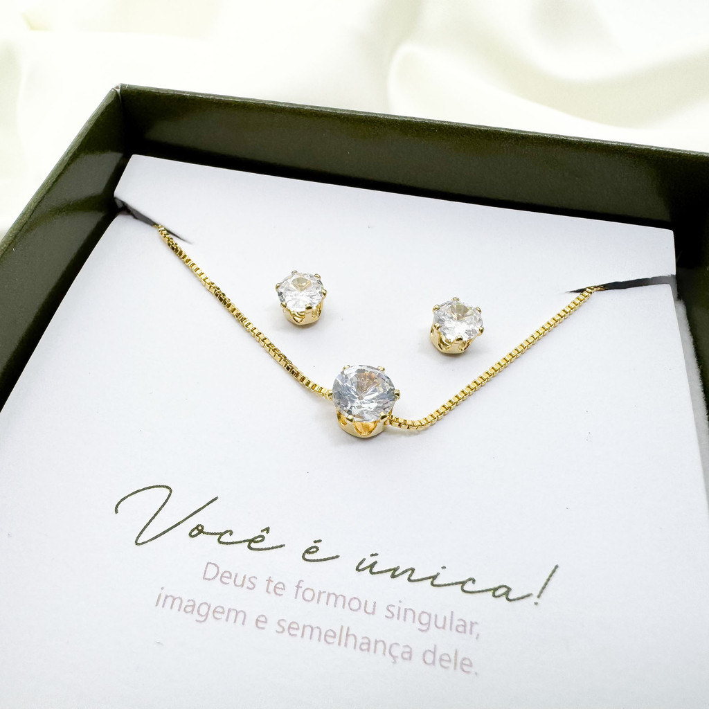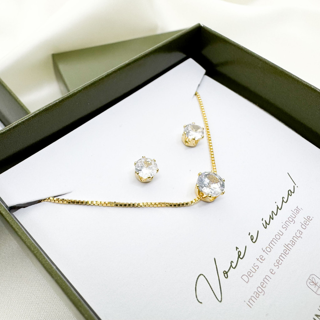Conjunto gargantilha e brinco Ponto De Luz - presente - envio imediato