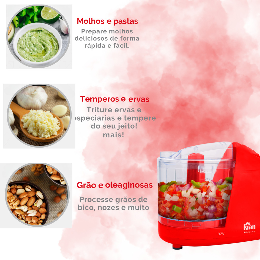 Mini Processador De Alimentos Elétrico Turbo Triturador Alho Cebola Legumes Compacto Casa - Kian