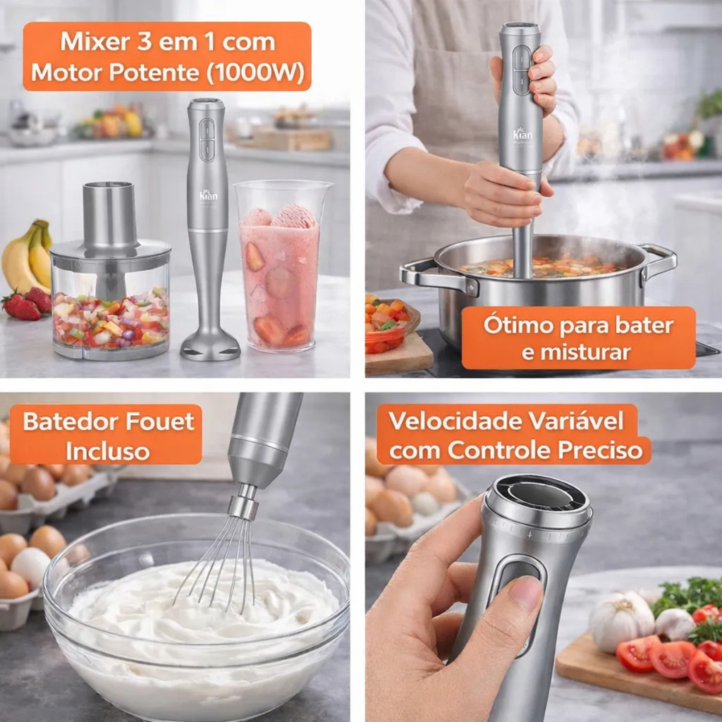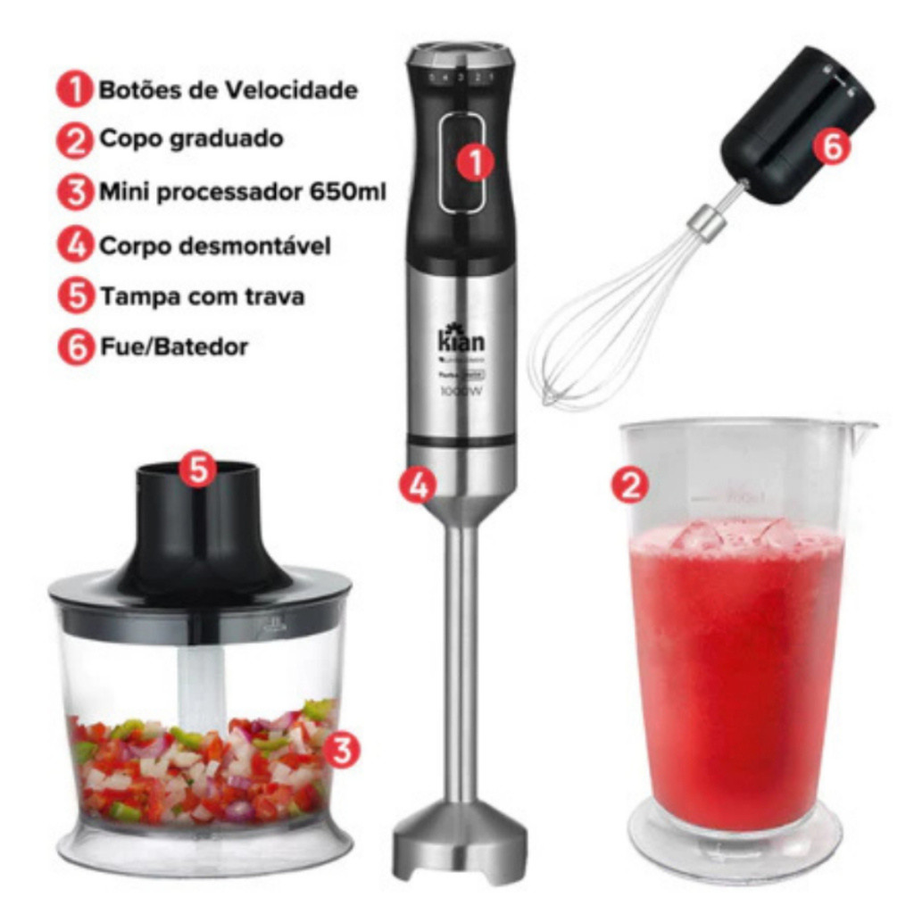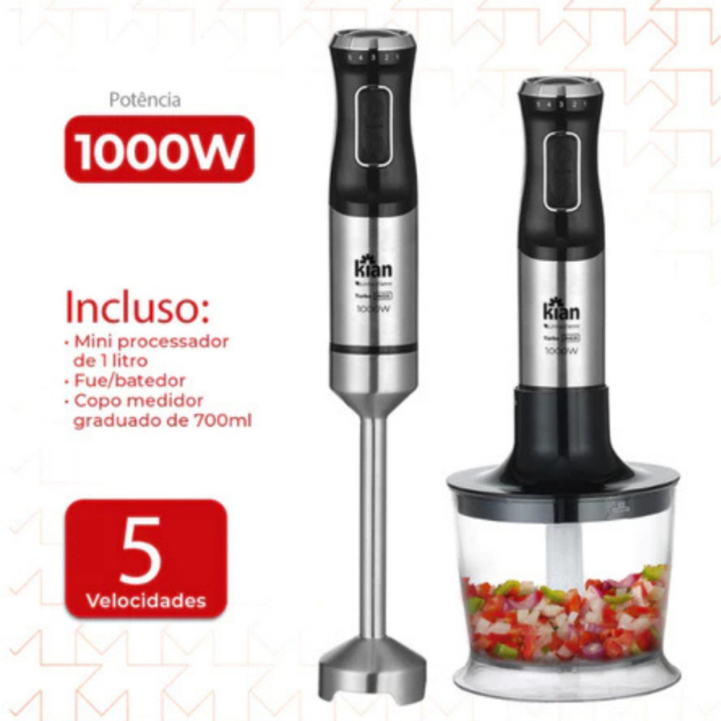 Mixer Moedor 3 em 1 Turbo 1000W 127V Ou 220V 5 Velocidades Processador Misturador Preto - Kian