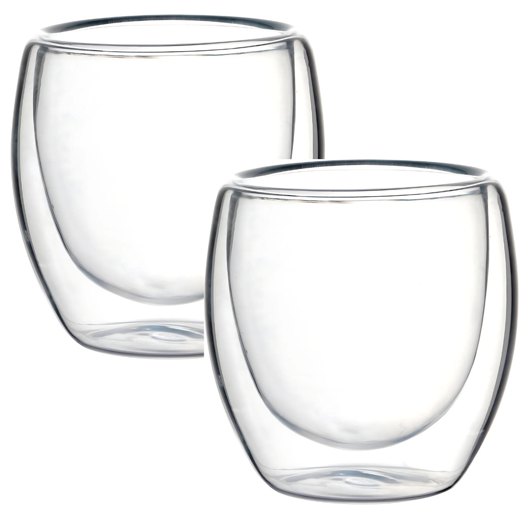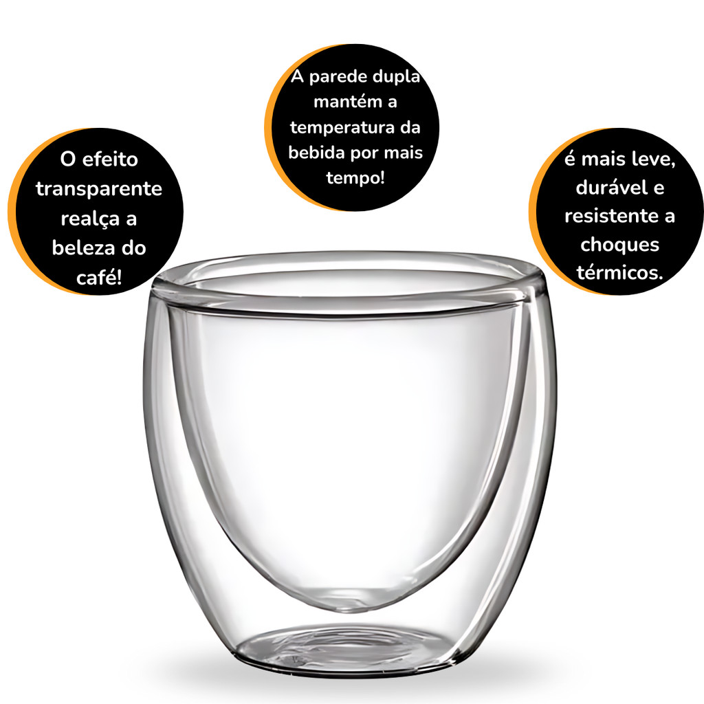 Jogo 2 Copos Xicaras Para Café Coffee Chá Time Em Vidro Parede Dupla Casa Cozinha 240ml
