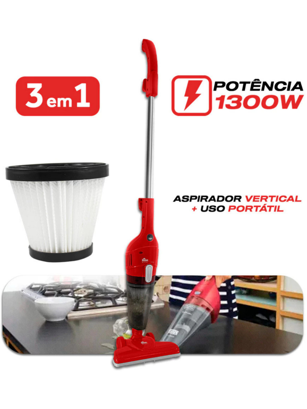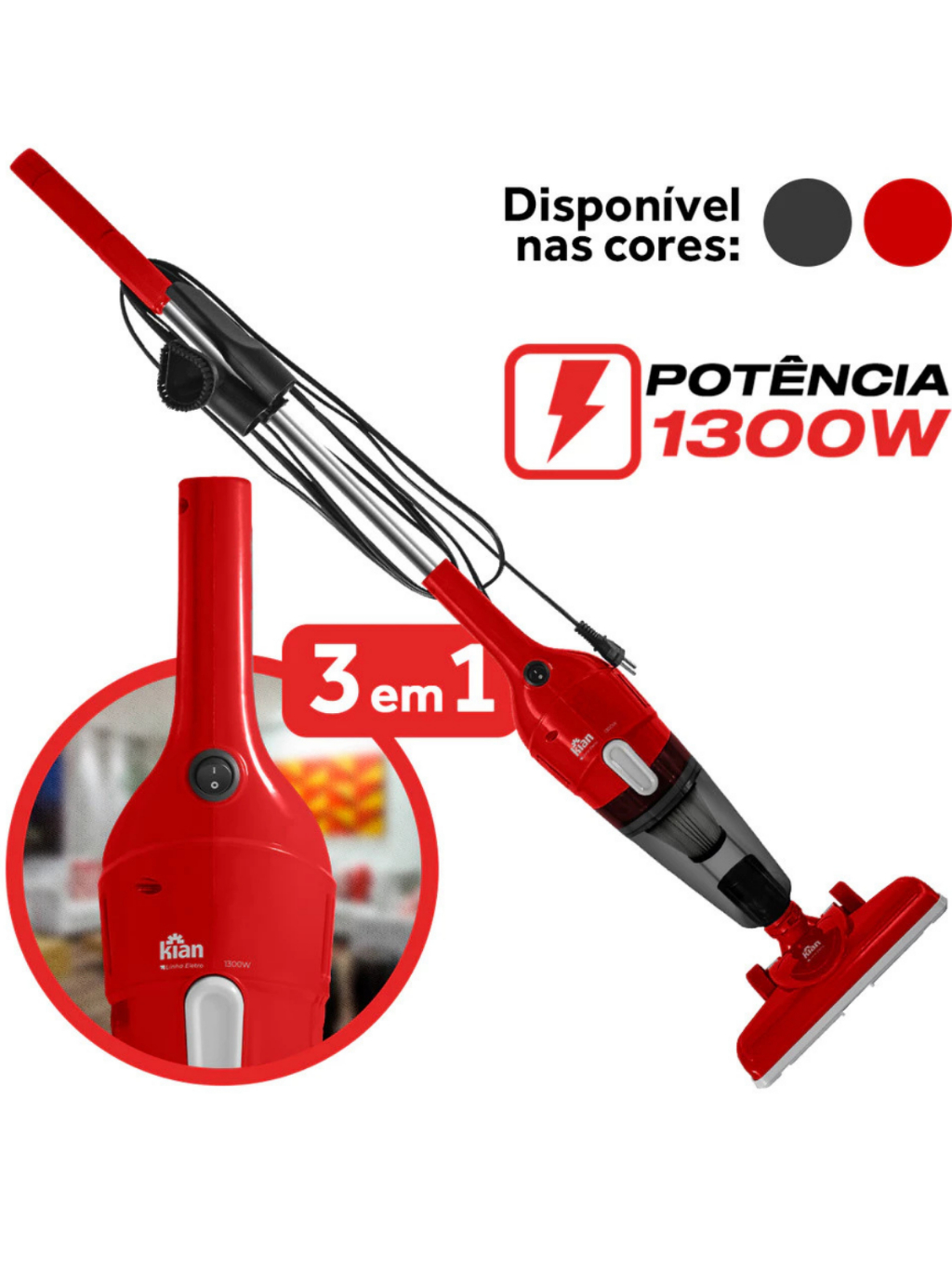 Aspirador De Pó 3 Em 1 Linha Premium Sucção Forte Multifuncional Para Limpeza De Casa Carro 1300W