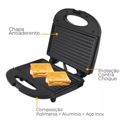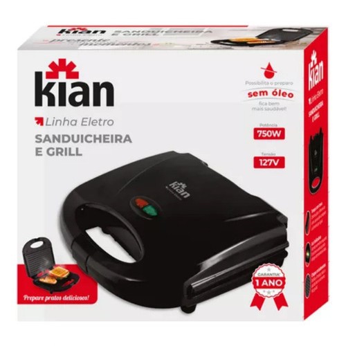 Sanduicheira Grill 2 em 1 Antiaderente Chapa Elétrica Omeleteira Lanche Casa Cozinha 750W Kian