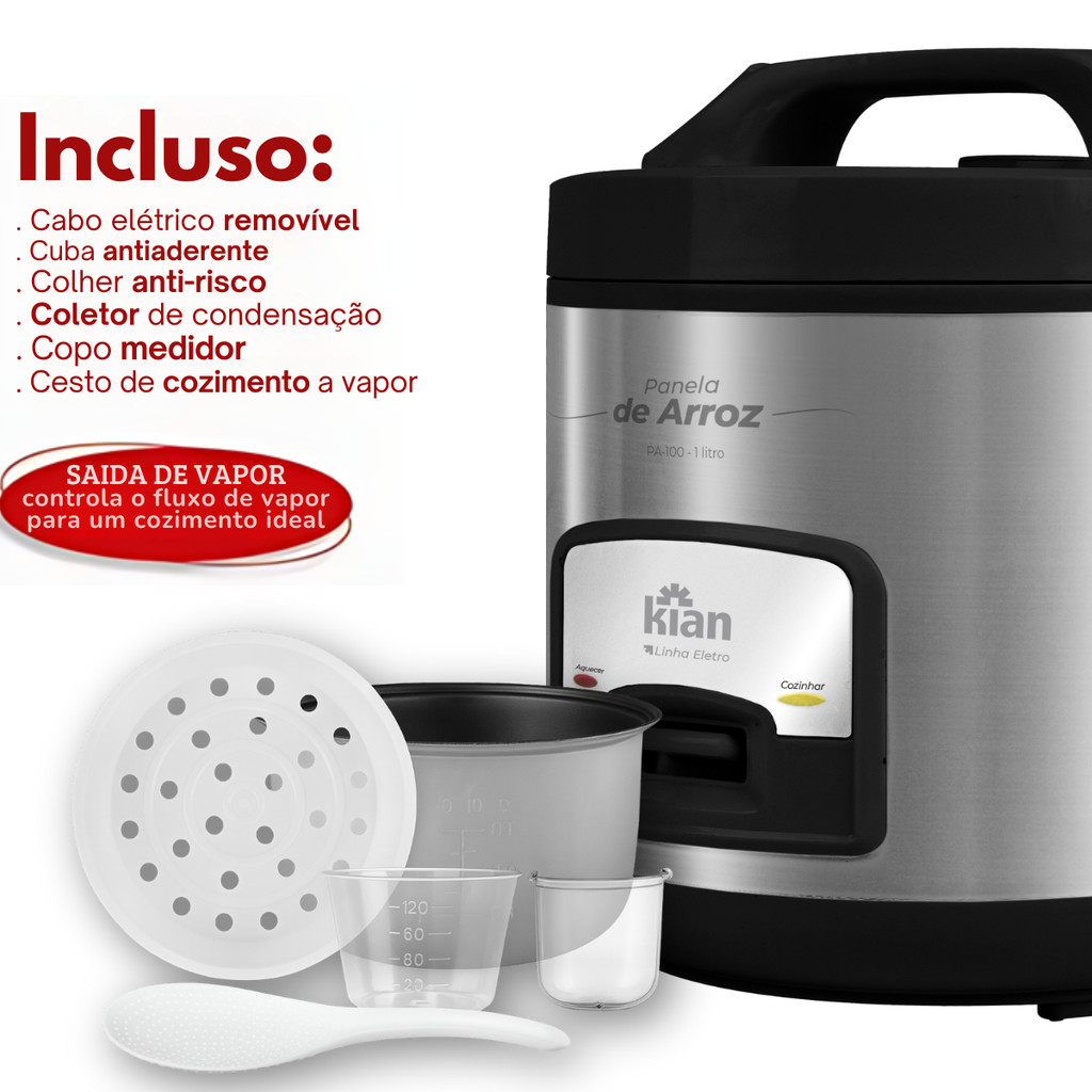 Panela Elétrica De Arroz 5 Xícaras Prime Luxo Arroz Soltinho Inox Casa Cozinha 127V PA-100 - Kian