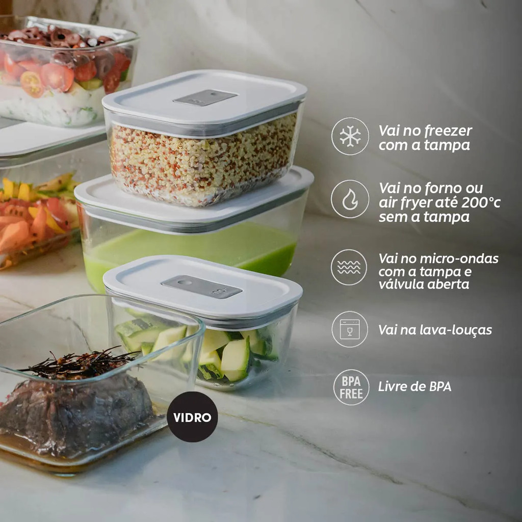 Pote De Vidro Hermetico Armazenamento Fresh Lock 2,4L Cor Preto Pode Usar Freezer Forno - Ou