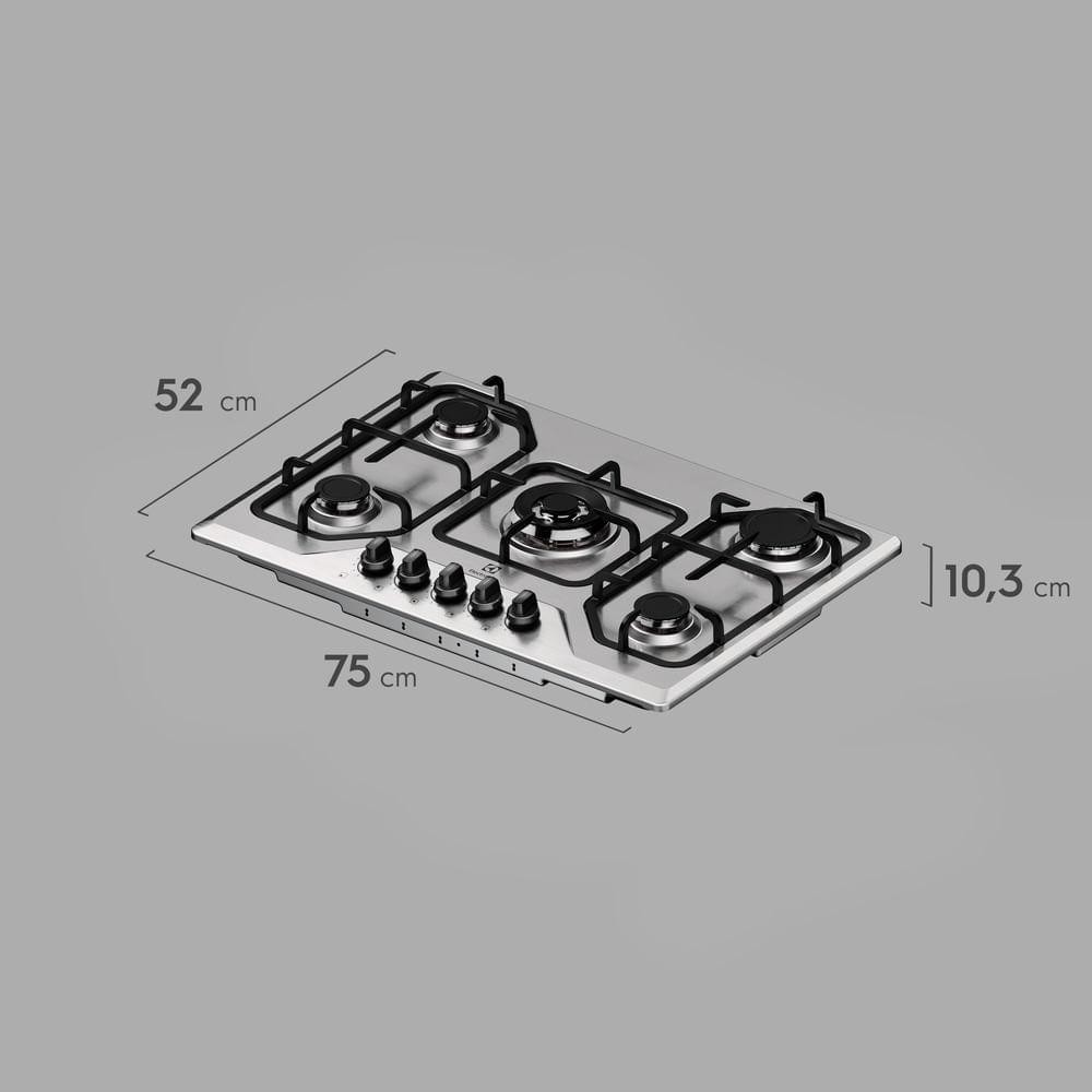Cooktop 5 Bocas a Gás Electrolux Inox Experience Multi Chama e Grade Ferro Fundido (KE5XC)
