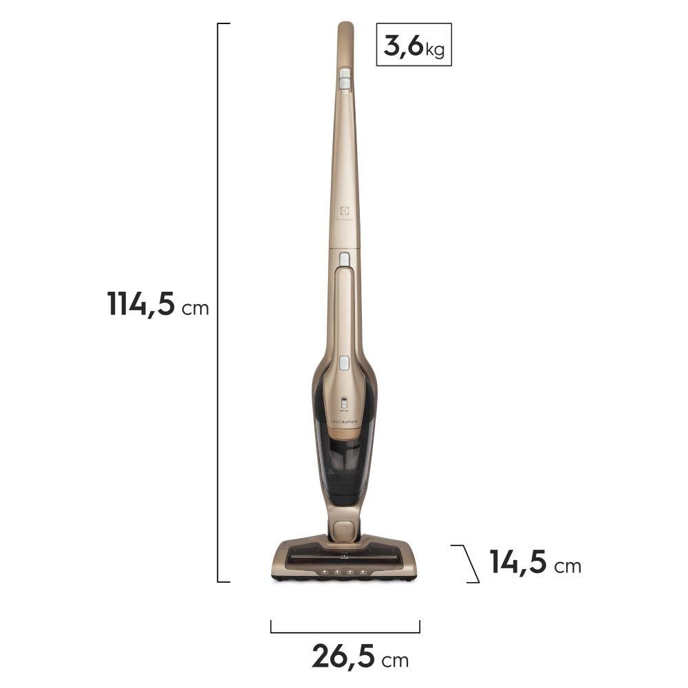 Aspirador de Pó Vertical Sem Fio Electrolux Ergorapido 2 em 1 Bocal Pet até 45 min Dourado (ERG26)