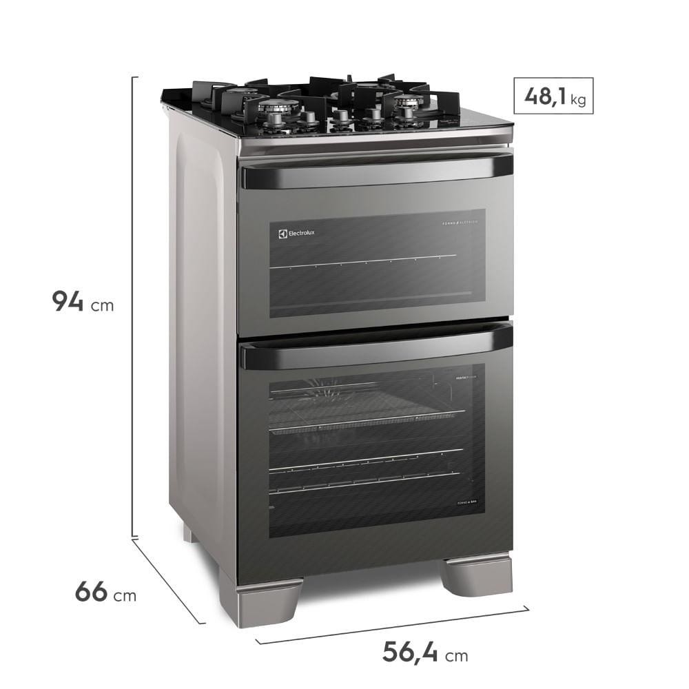 Fogão 4 bocas Electrolux Cinza Expert 2 Fornos, Função Air Fryer, Grill e Timer (FE4AD)