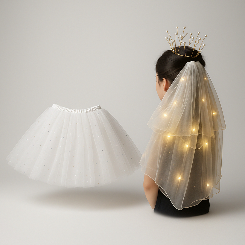 Fantasia de Noiva Saia e Véu LED Halloween Festas Noivinha