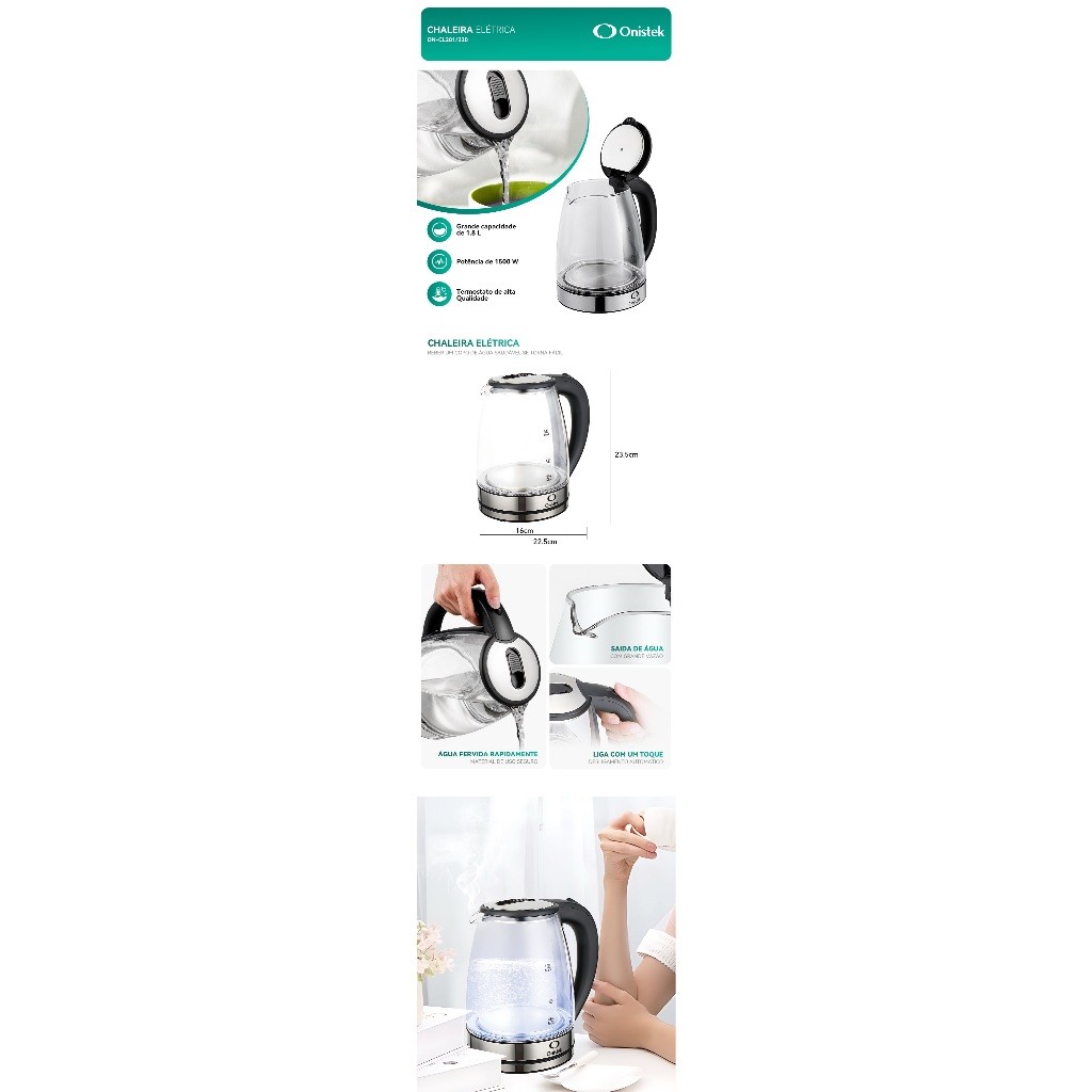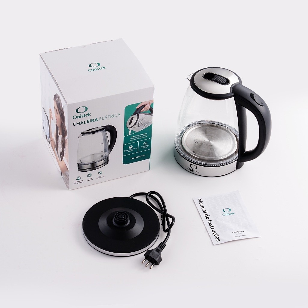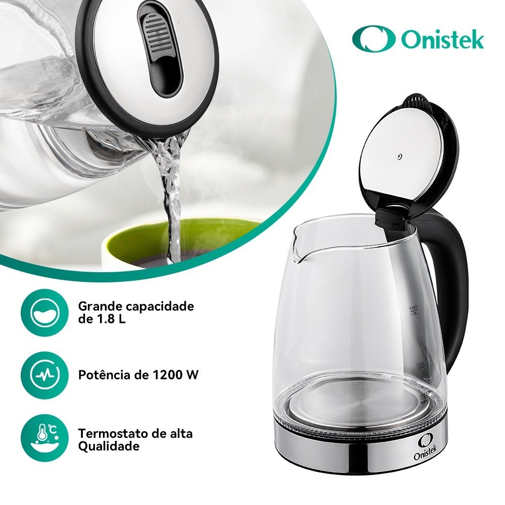 Chaleira Elétrica Onistek 1,8L com LED Que Dança Luzes Inteligentes Vidro Transparente