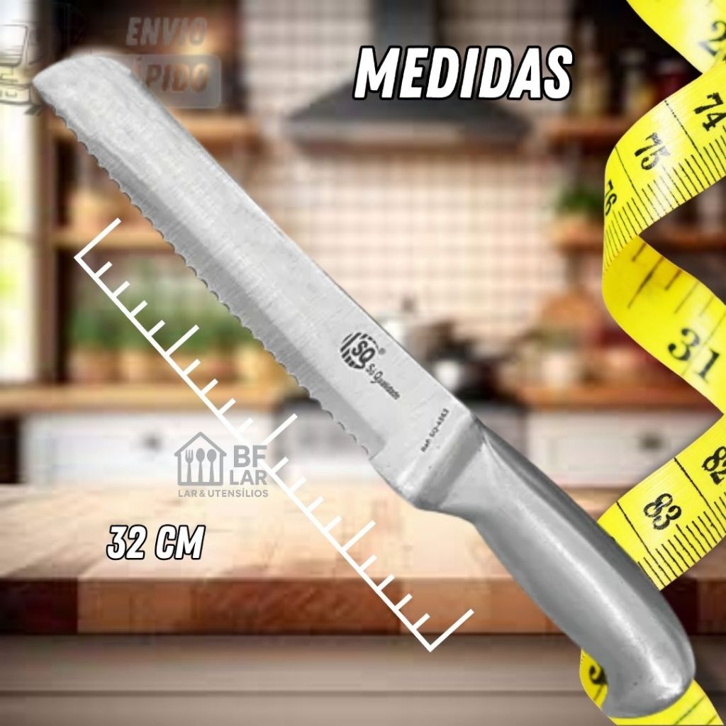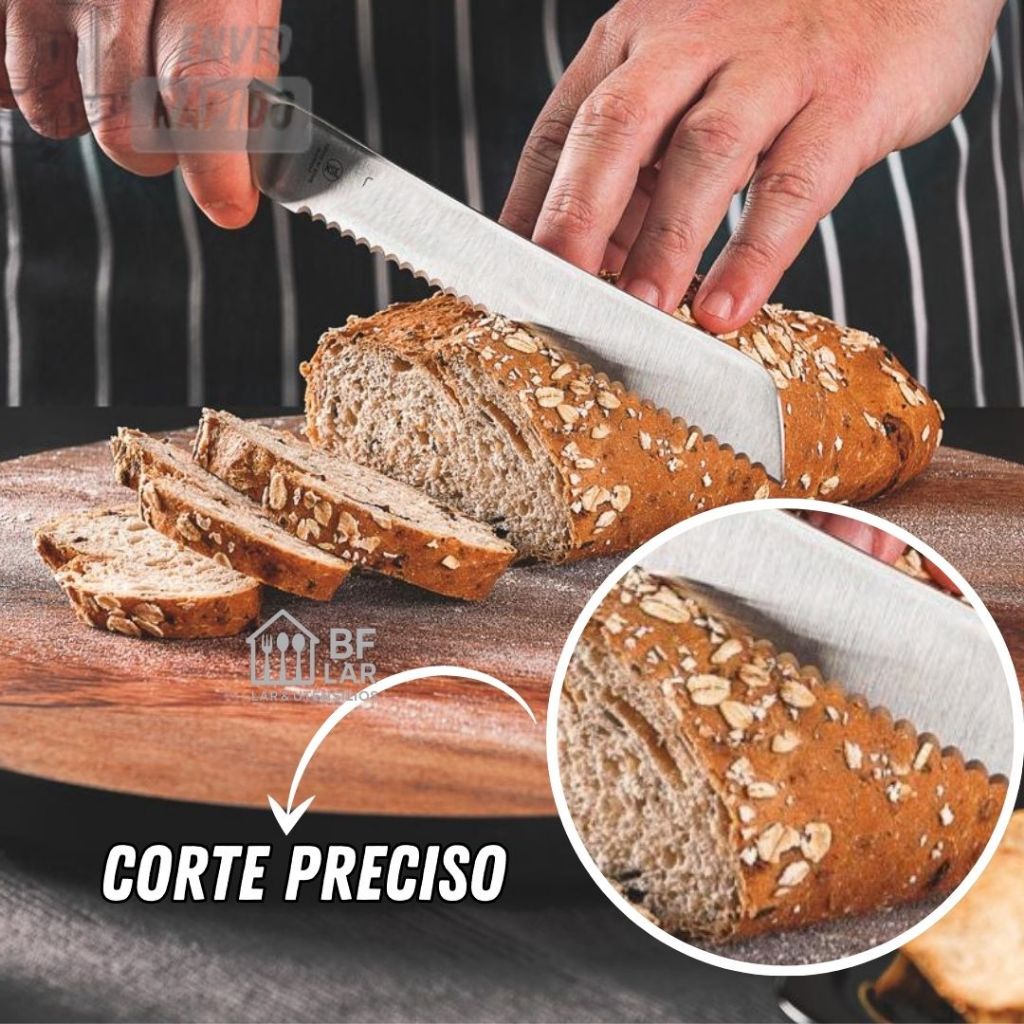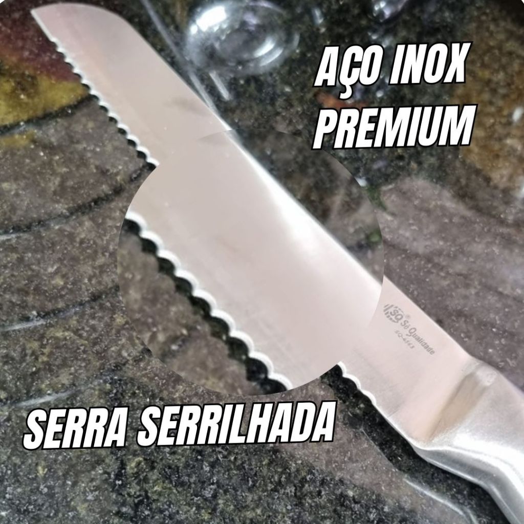 Facas de Pão 8 Pol Aço Inox Premium Serrilhada Cabo Inteiriço 32cm
