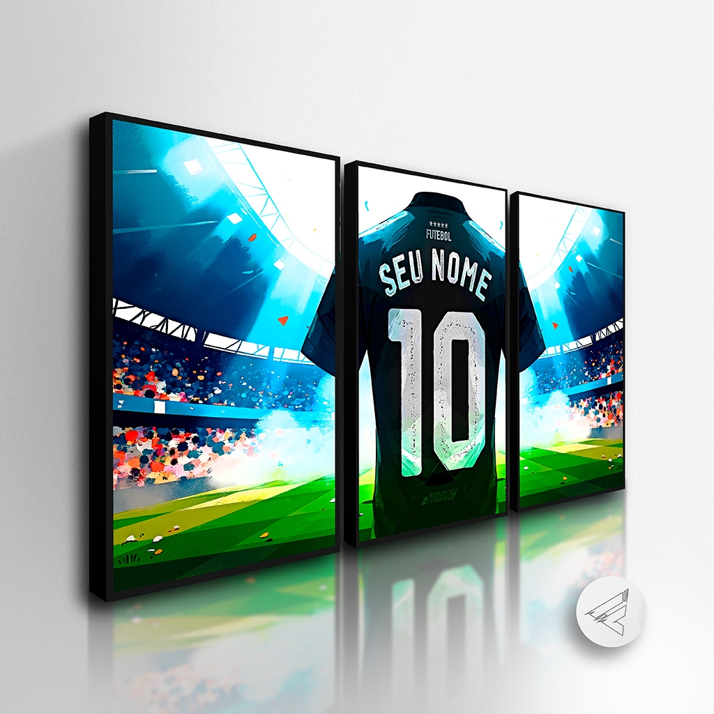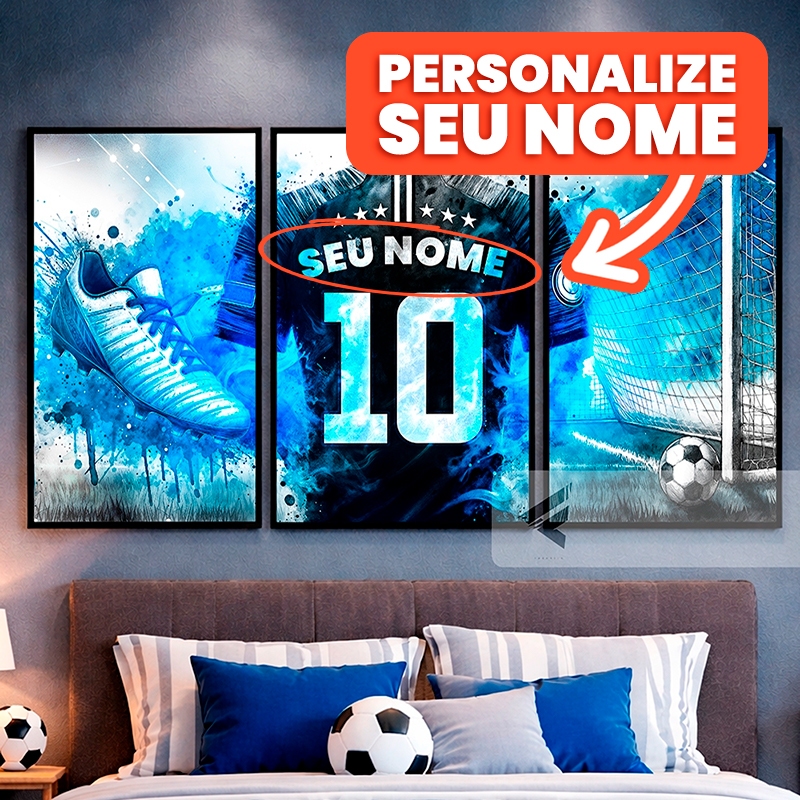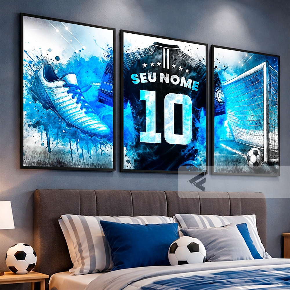 Quadro Futebol Nome Personalizado Kit 3 Quadros Infantil Futebol Basquete Vôlei Quarto Menino(a)