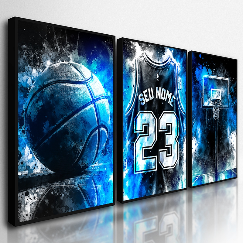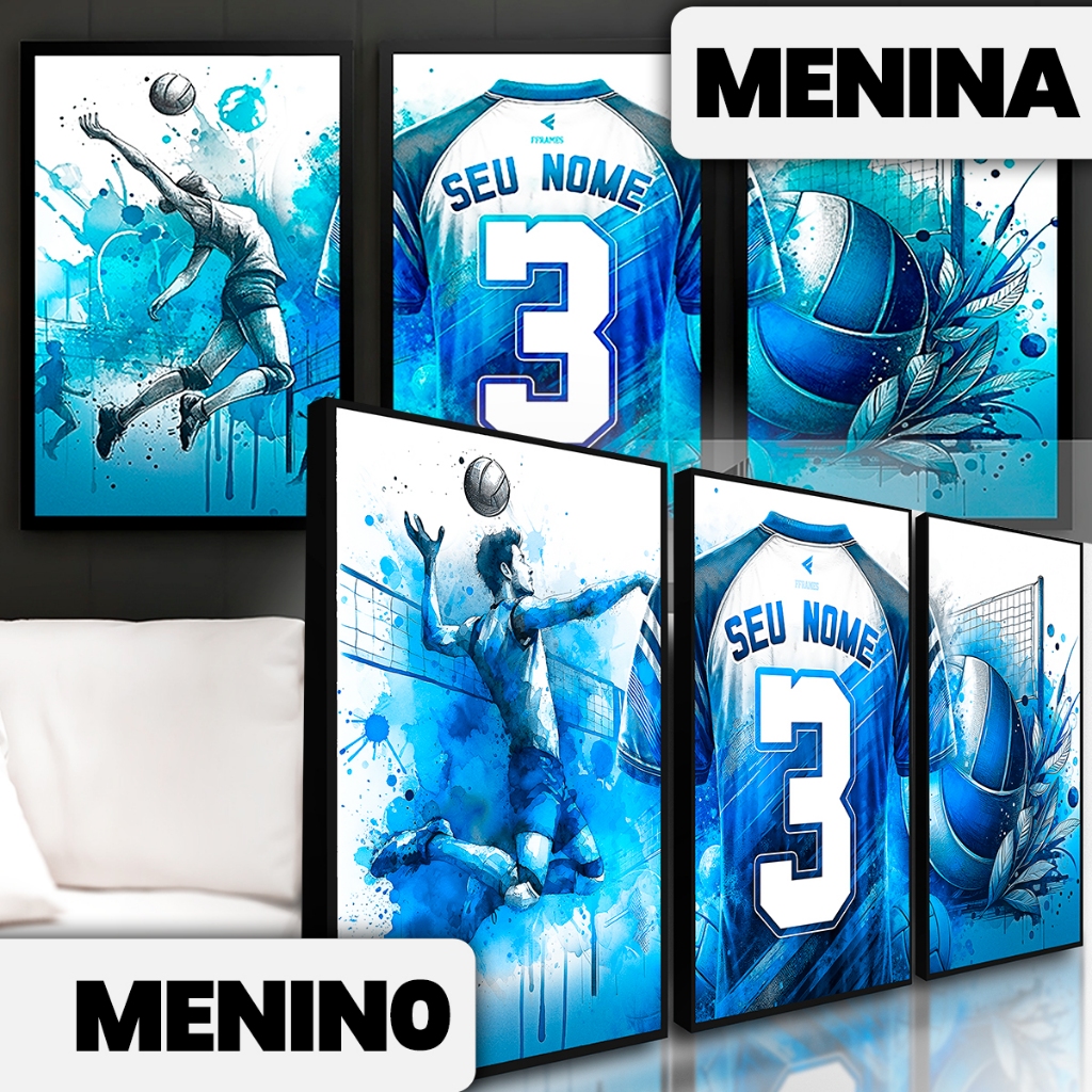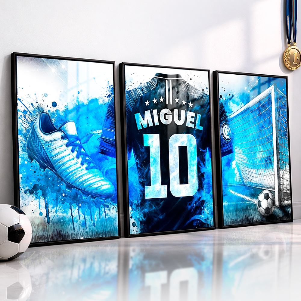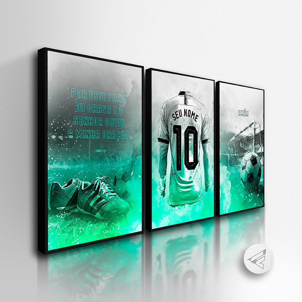 Quadro Futebol Nome Personalizado Kit 3 Quadros Infantil Futebol Basquete Vôlei Quarto Menino(a)