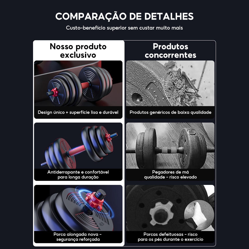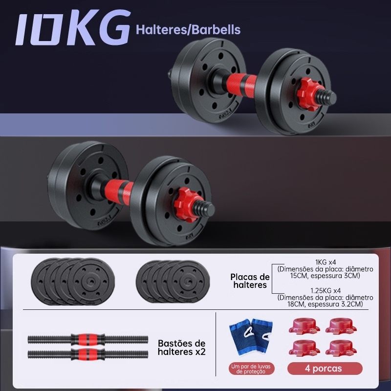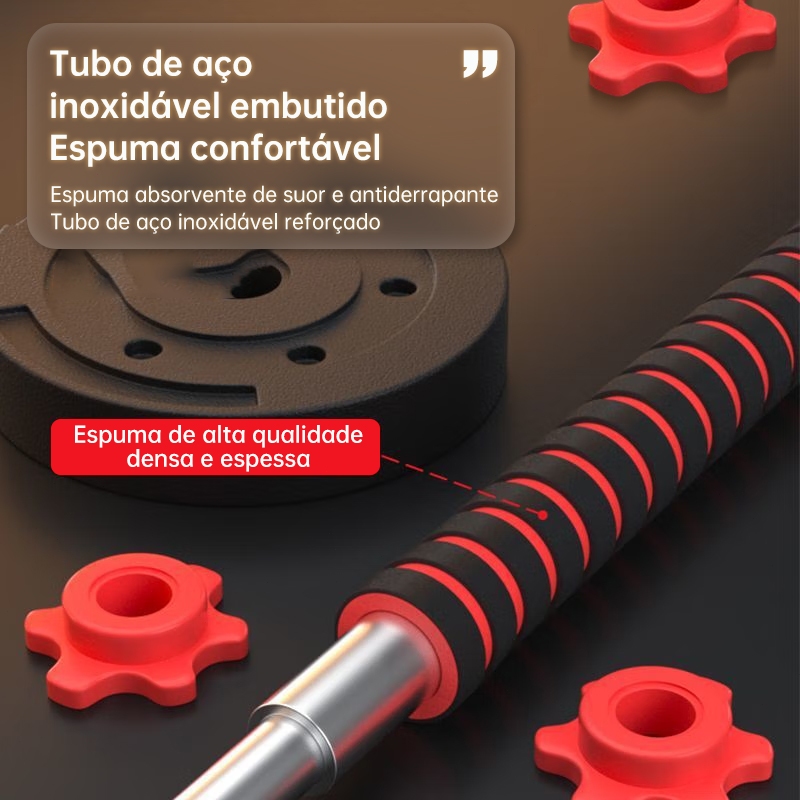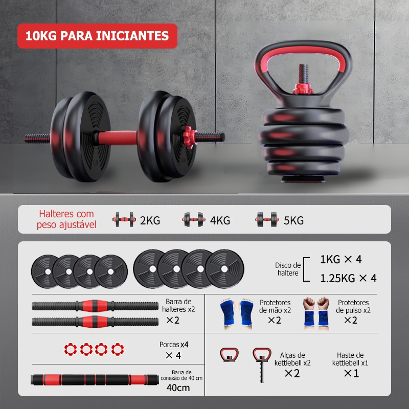 Kit Halteres Barra Kettlebell 6 em 1 Peso Musculação treino em casa 10kg