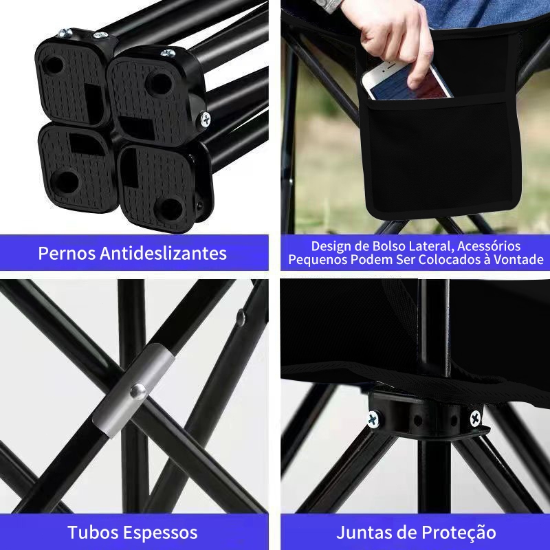 Cadeira dobrável com bolsa de transporte para acampamento e pesca ao ar livre – Suporta até 150kg