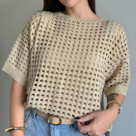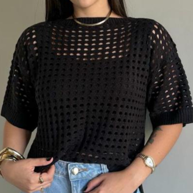 Conjunto Blusa Ampla Ponto Crochê Vazado Com Regata Modal Verão