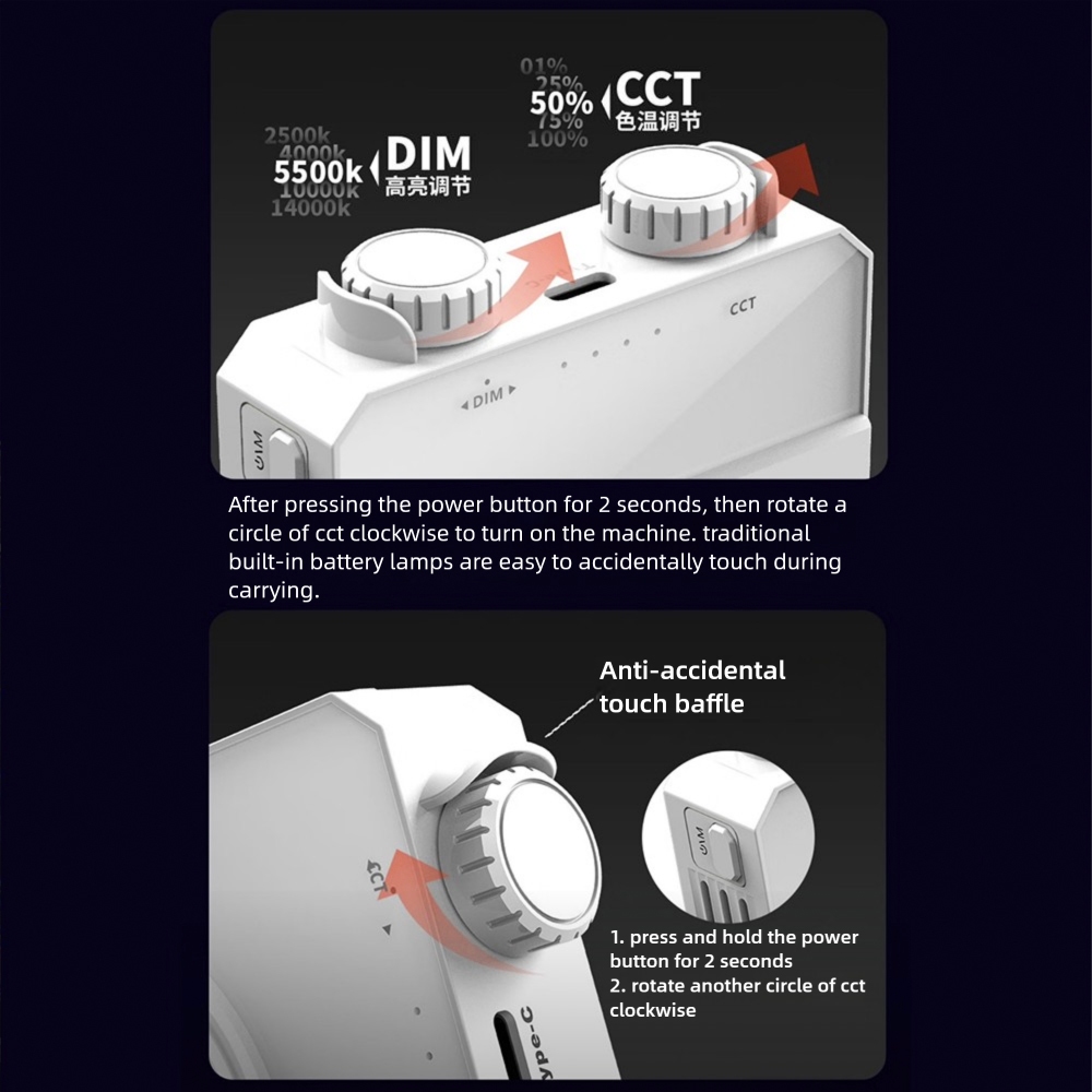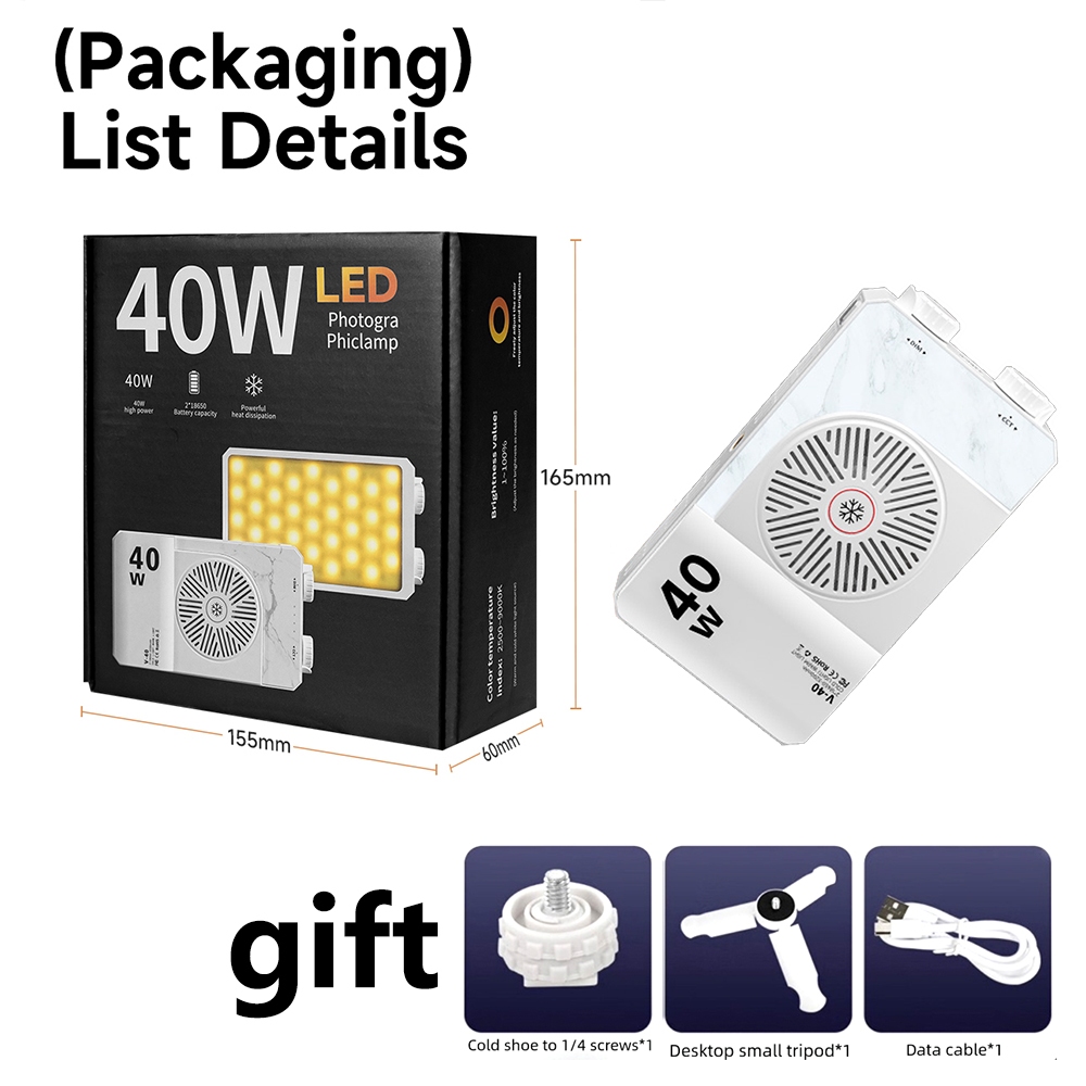 Luz LED luminaria Bicolor 40W Profissional - CCT Ajustável 2500K-9000K, 4400mAh, Luz de Preenchimento para YouTube/Filma