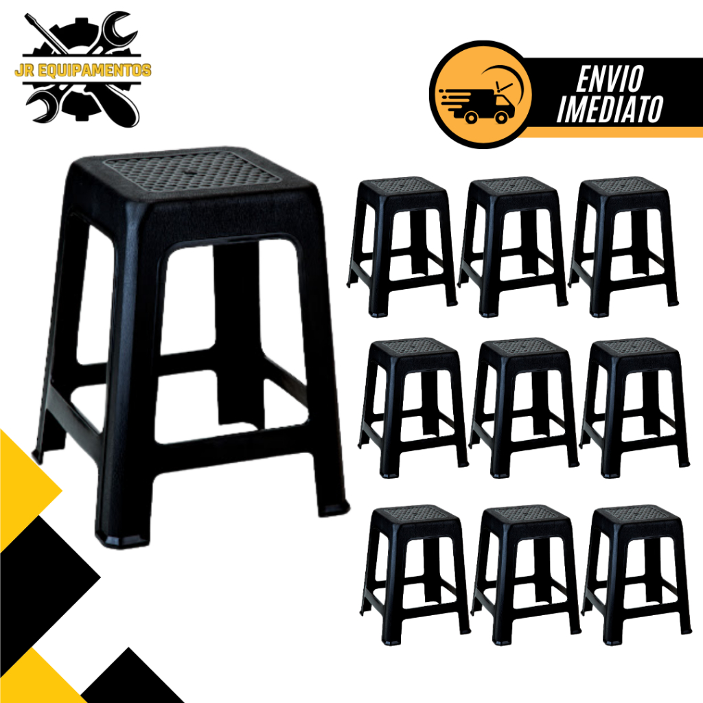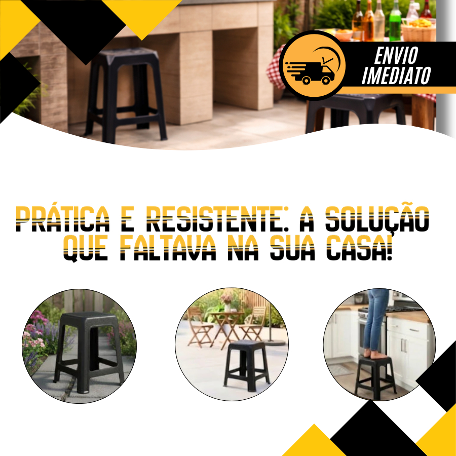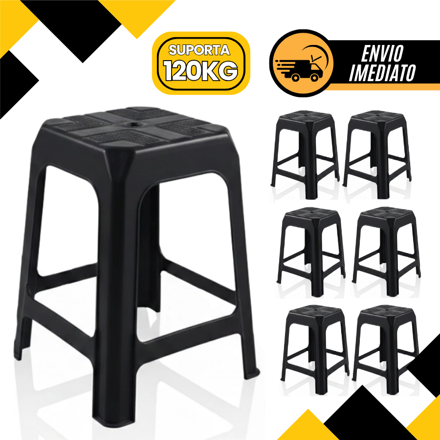 Banqueta De Plástico Preta Resistente Reforçada Adulto Preta Suporta Até 120kg