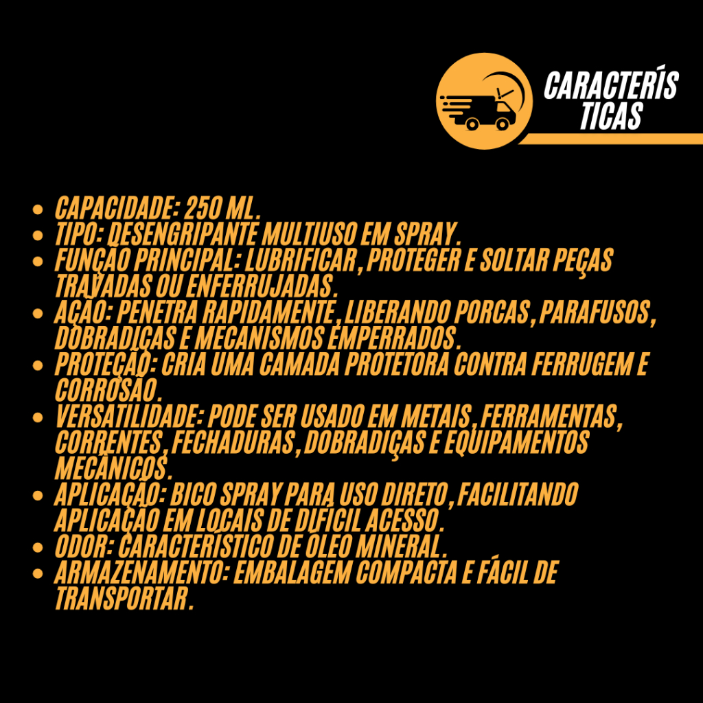 Desengripante Orange Chemicolor 250ml Lubrificante Multiuso Protege e Solta Ferrugem