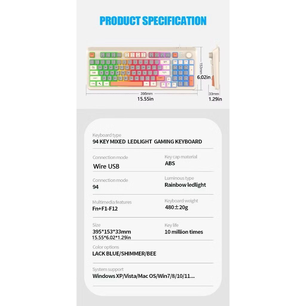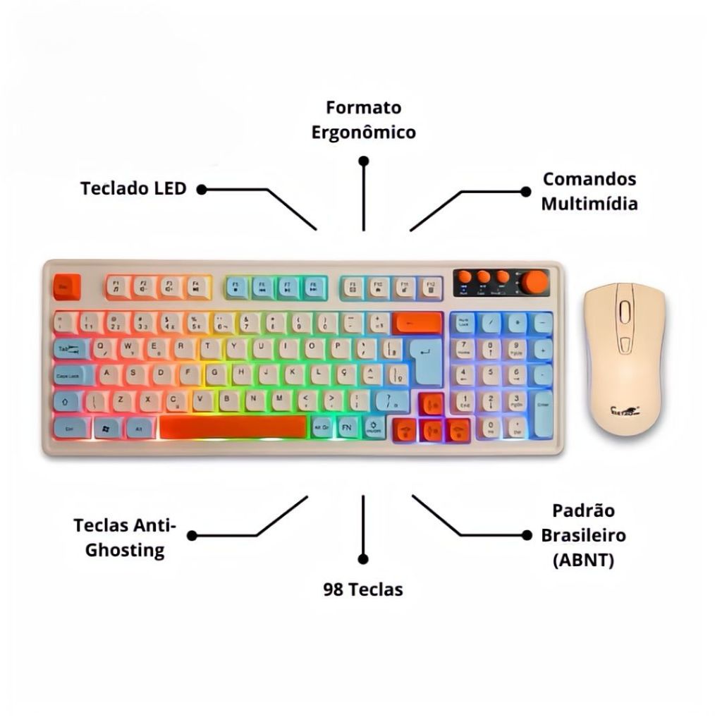 Kit Teclado E Mouse De Gamer Com Fio Para Três combinações de cores Iluminado 98 Teclas