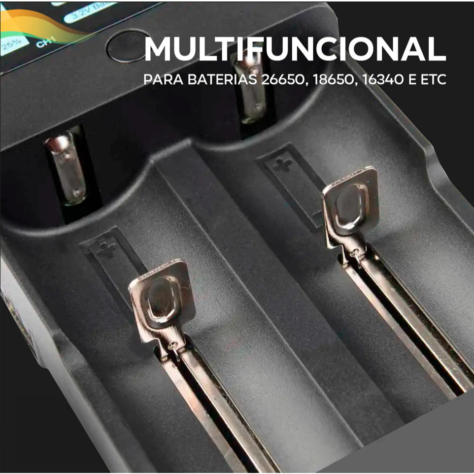 Carregador Duplo Premium Bateria 26650 16340 18650