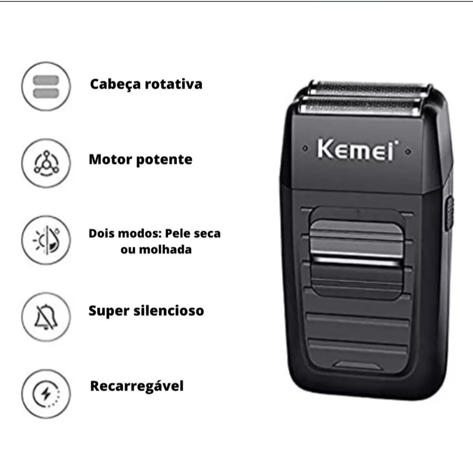 Barbeador Km-1102 Shaver Elétrico Sem Fio Kemei 2 Lâminas