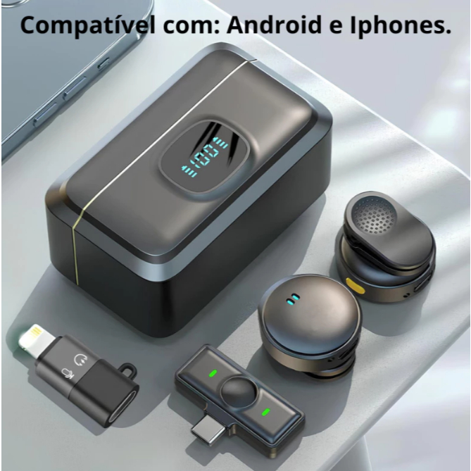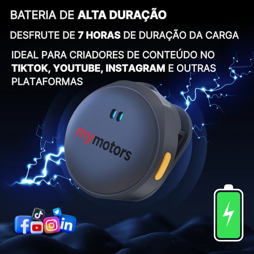 Microfone Lapela Redondo Imã Sem Fio Tipo C Preto Anti Ruído Duplo Mymotors Para Android E IOS